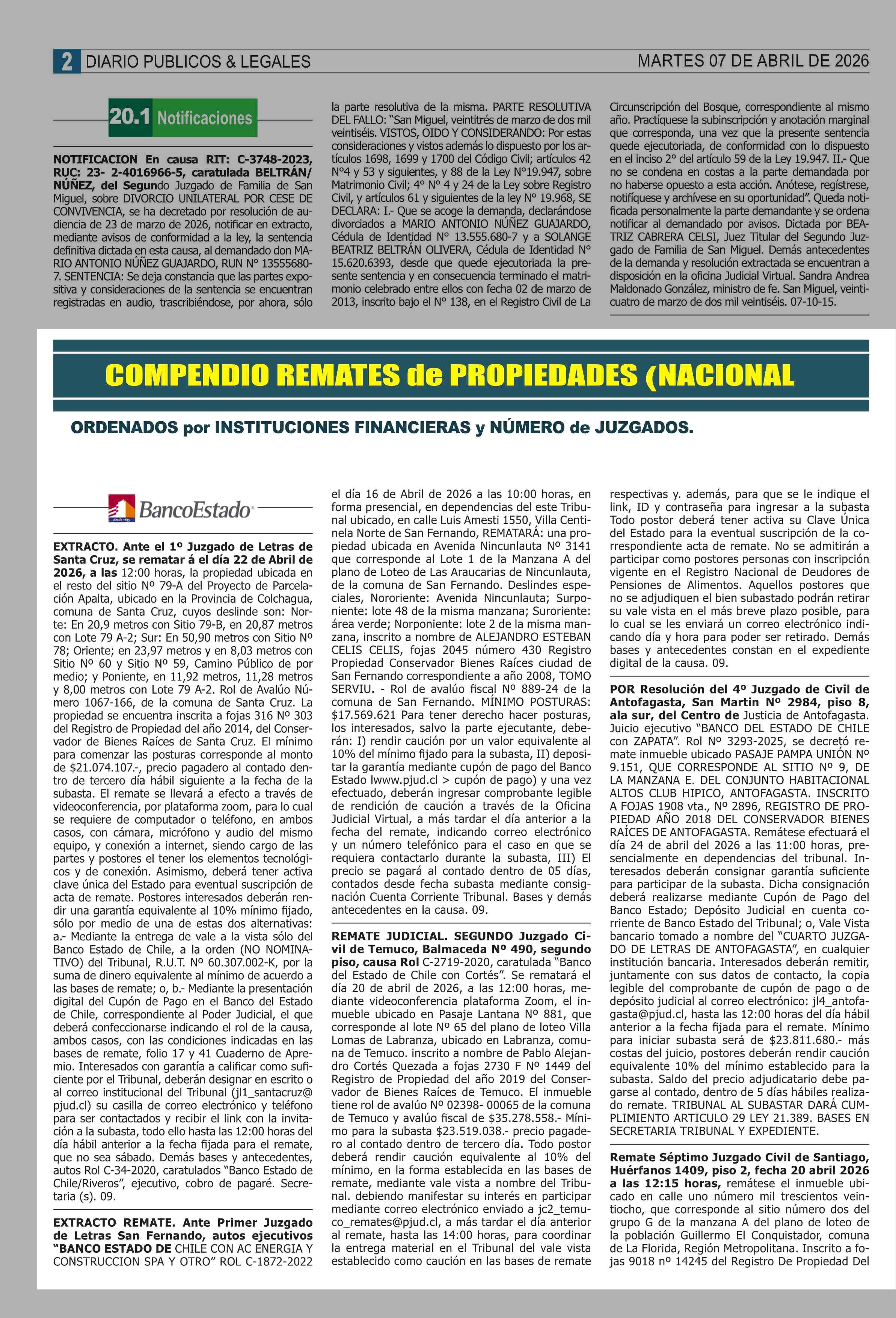 | Fecha: | 07-04-2026 | Sector: | Remates | Región: | Región Metropolitana de Santiago |