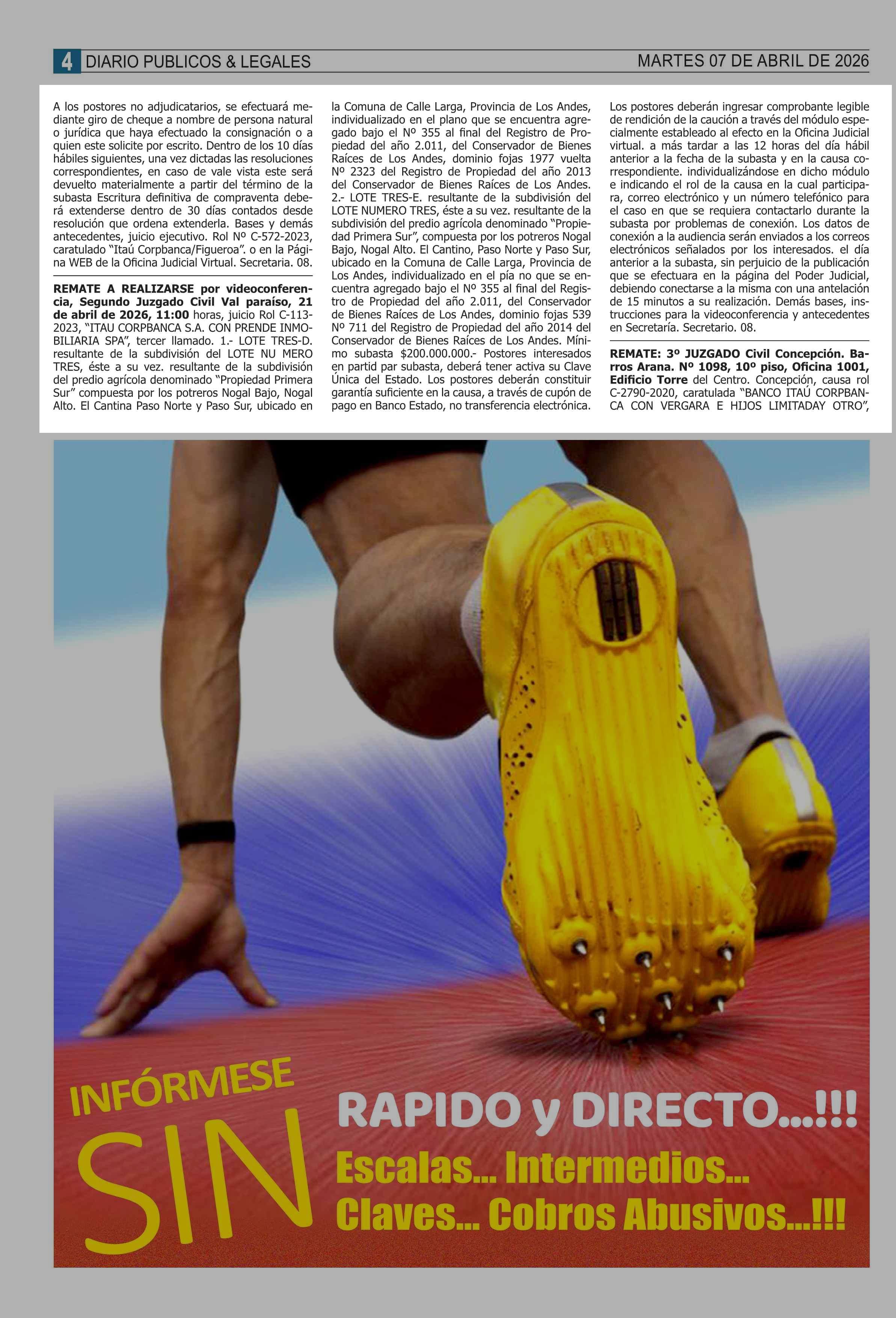 REMATES: COMPENDIO REMATES de PROPIEDADES (NACIONAL 07-04-2026 P&L Públicos y Legales |