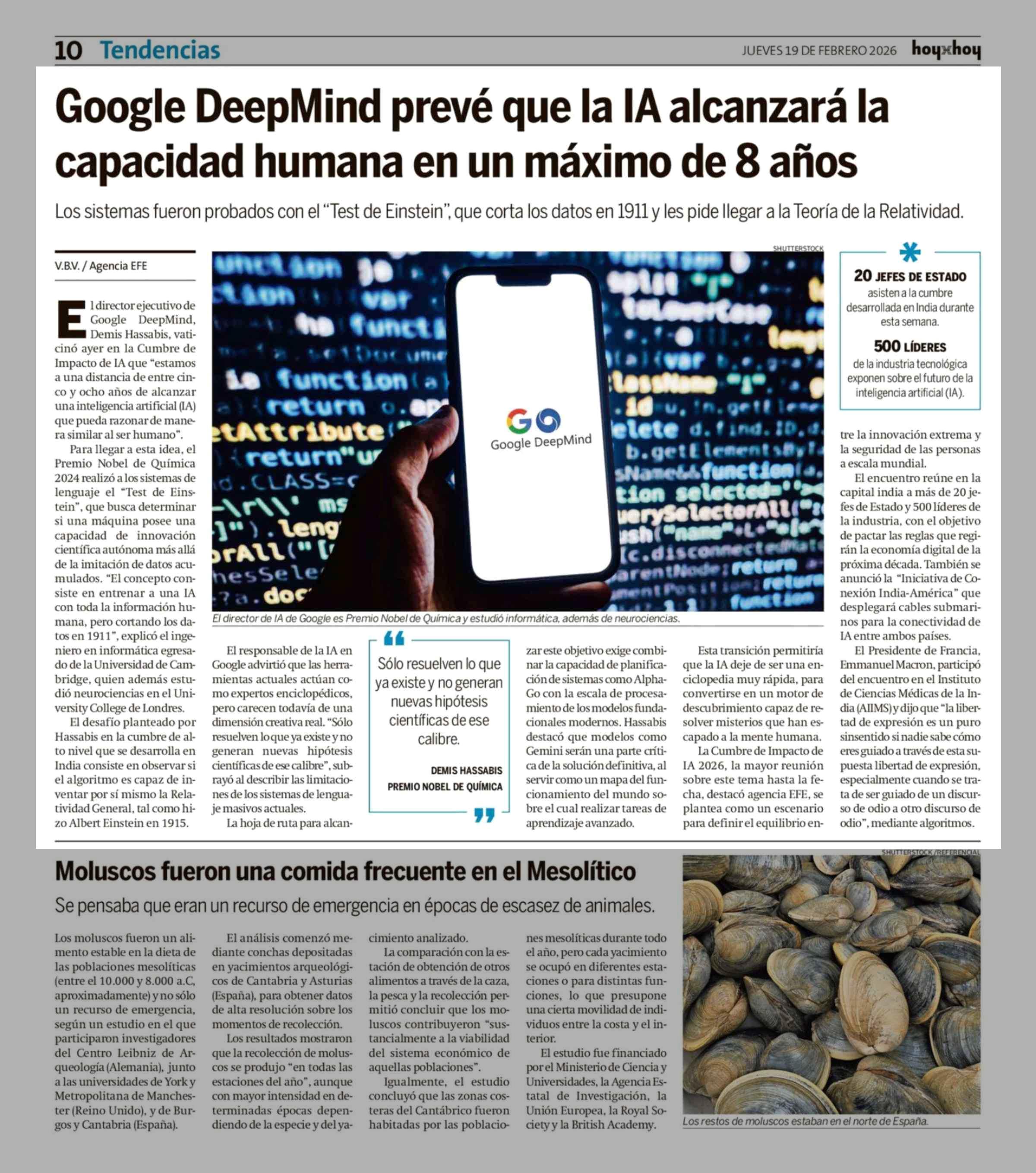 Google DeepMind prevé que la IA alcanzará la capacidad humana en un máximo de 8 años 19-02-2026 Hoy x Hoy Concepción |