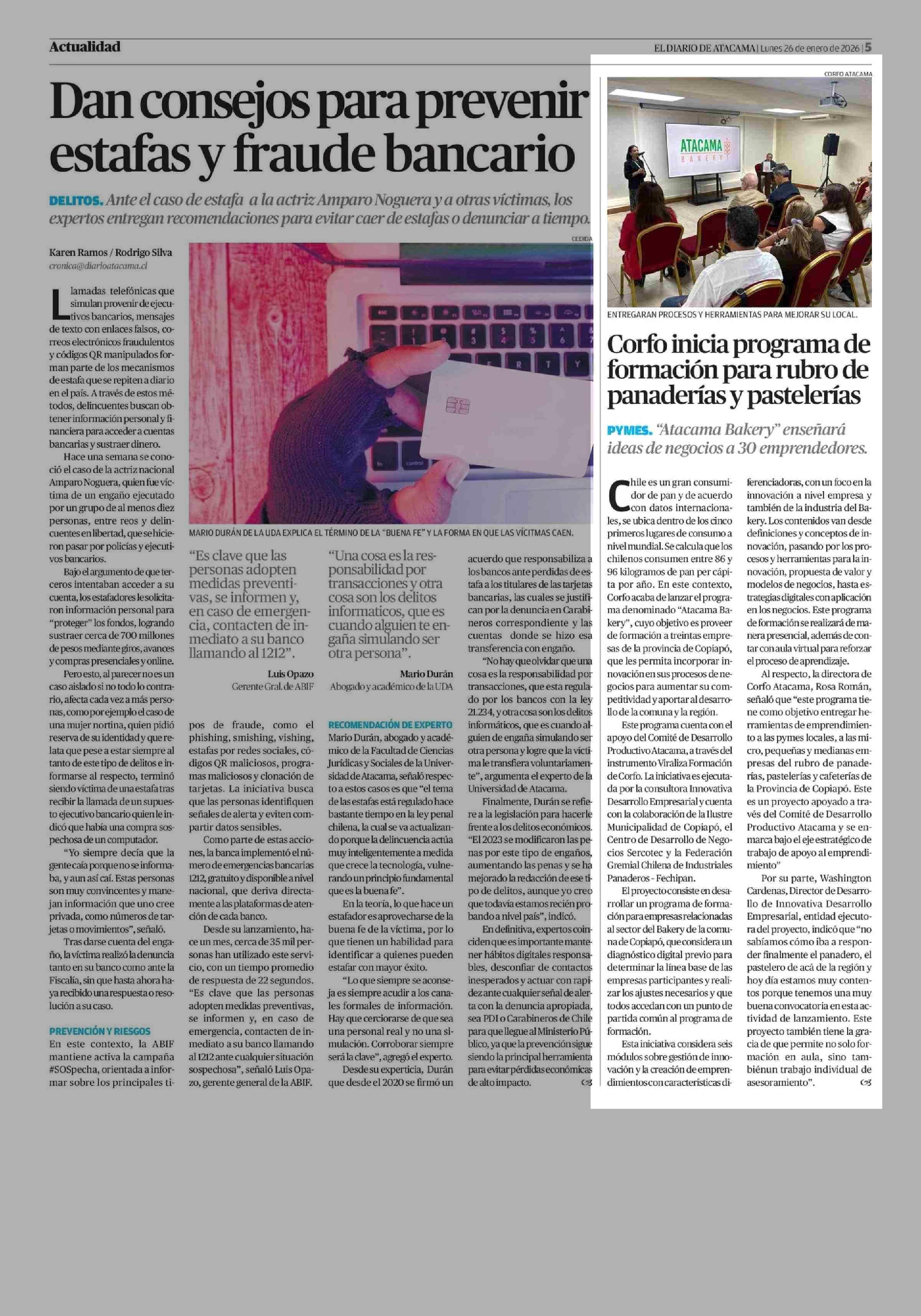Corfo inicia programa de formación para rubro de panaderías y pastelerías 26-01-2026 El Diario de Atacama |