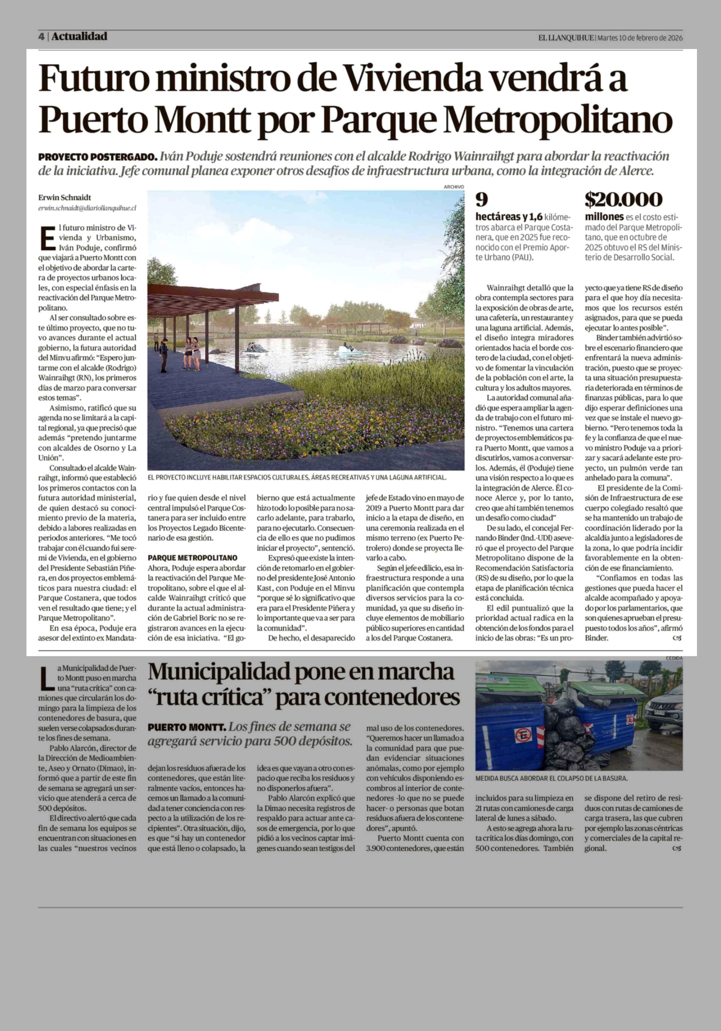 Título: Futuro ministro de Vivienda vendrá a Puerto Montt por Parque Metropolitano