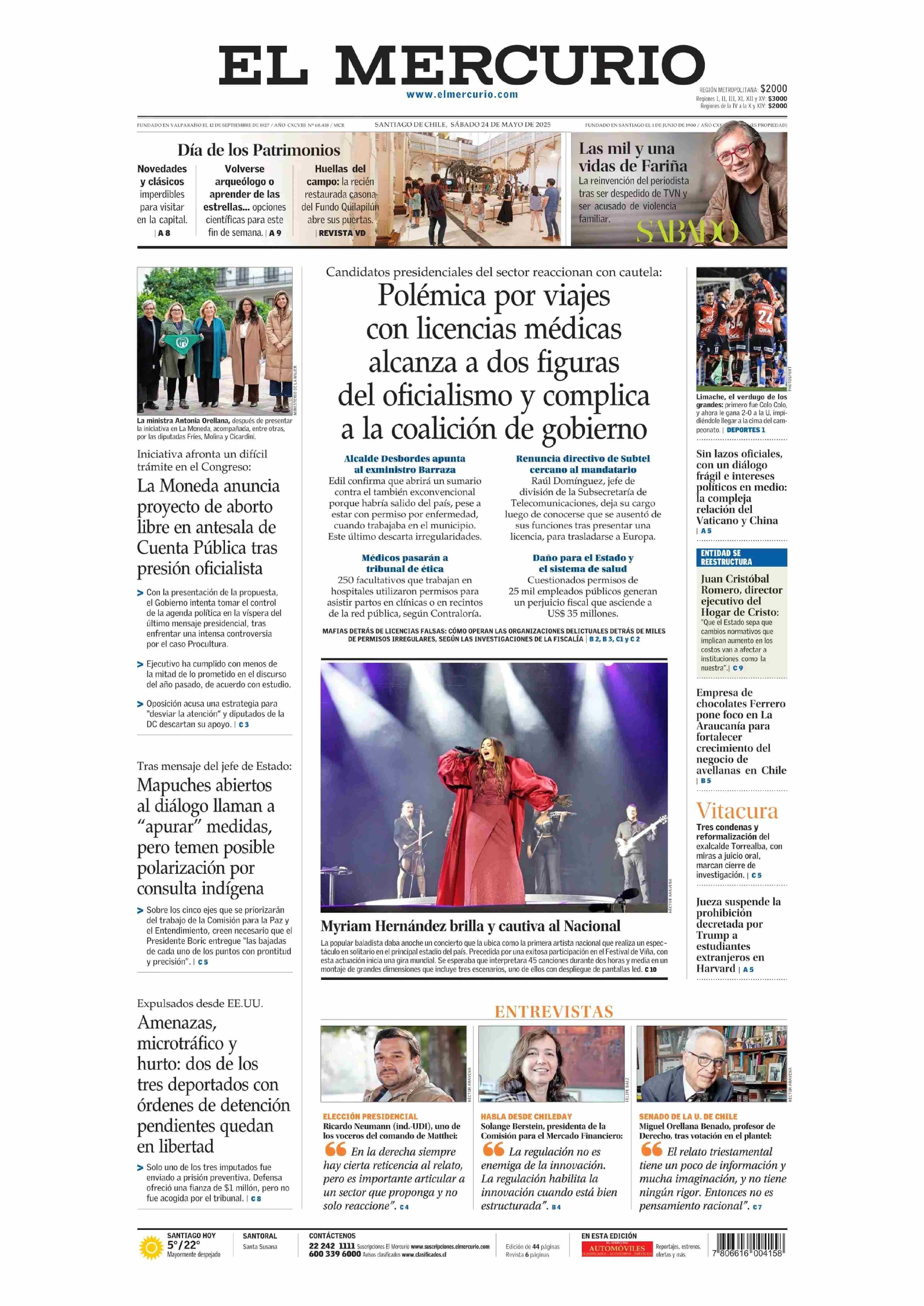 PORTADA EL MERCURIO (A) CHILE 24-05-2025 El Mercurio |