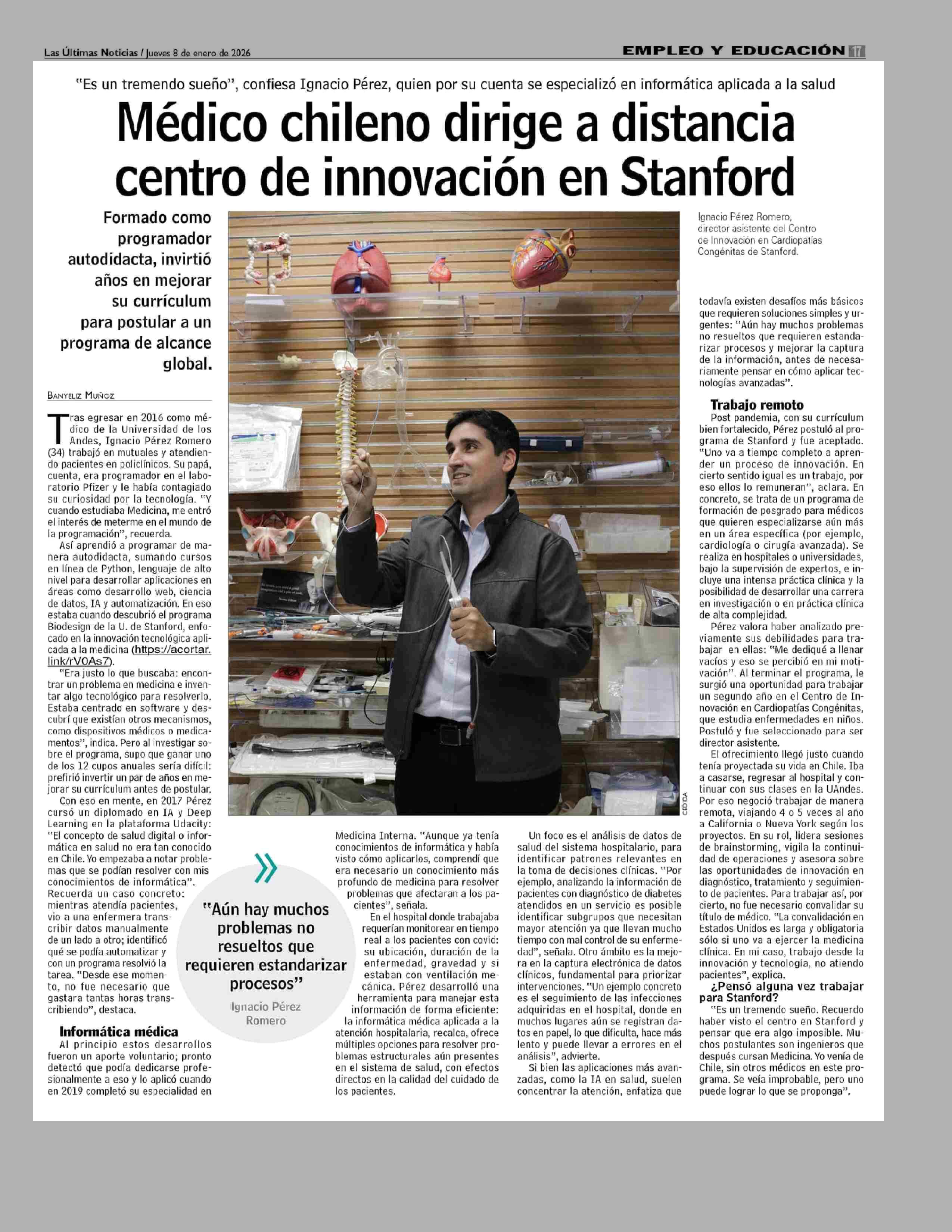 Médico chileno dirige a distancia centro de innovación en Stanford 08-01-2026 Las Últimas Noticias |