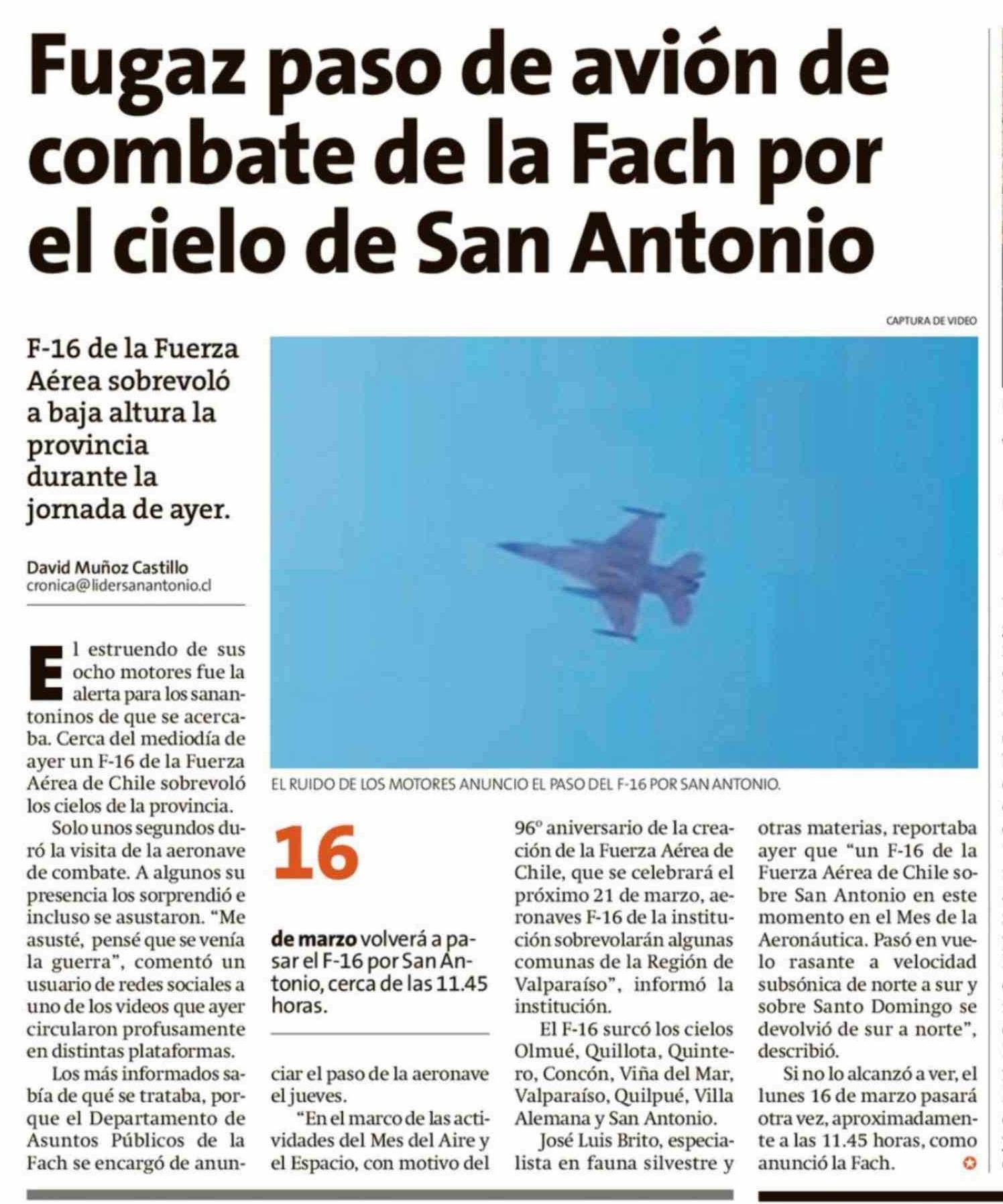 Fugaz paso de avión de combate de la Fach por el cielo de San Antonio 14-03-2026 El Líder |