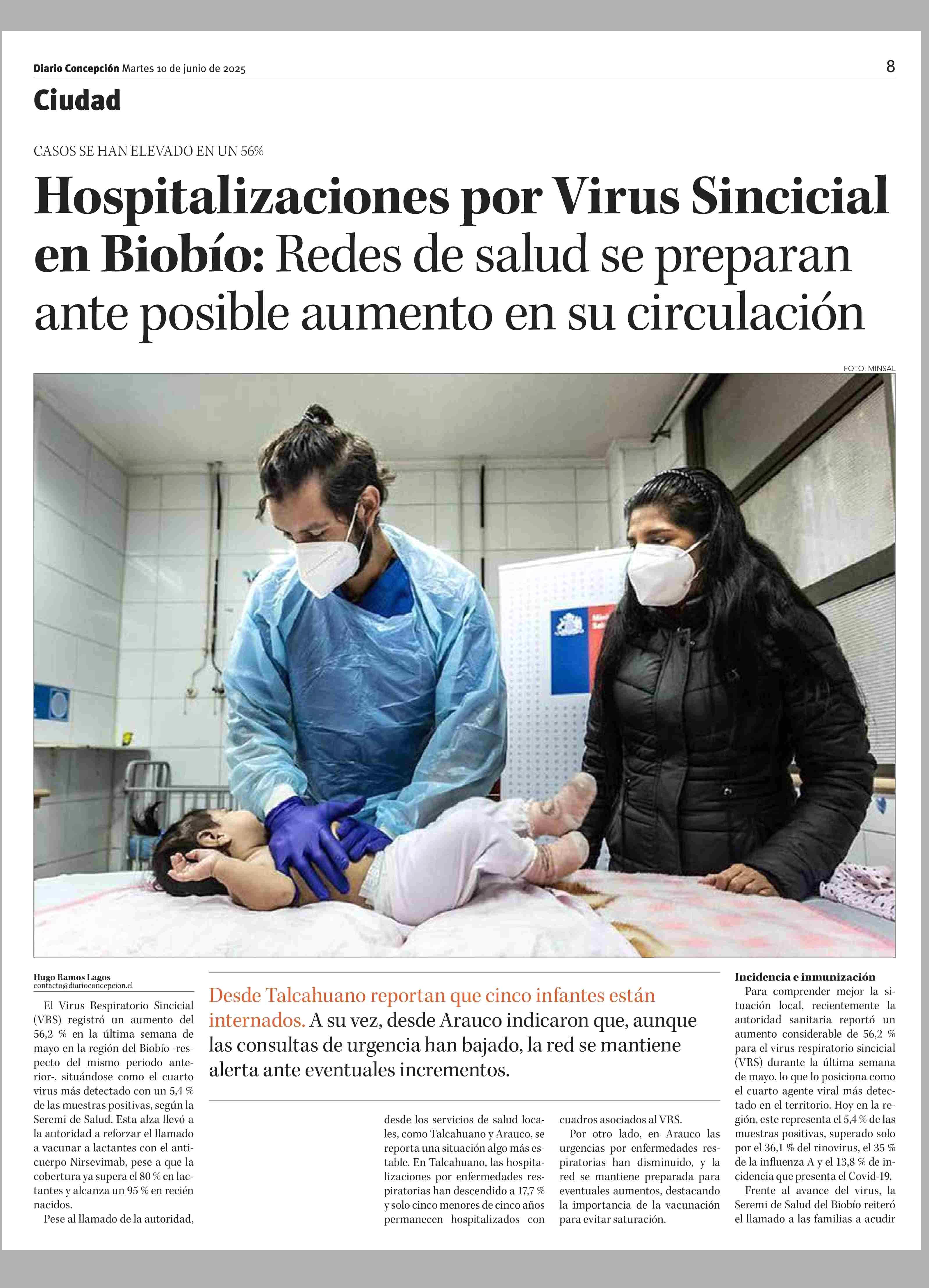 Hospitalizaciones por Virus Sincicial en Biobío: Redes de salud se preparan ante posible aumento en su circulación 10-06-2025 Diario Concepción |