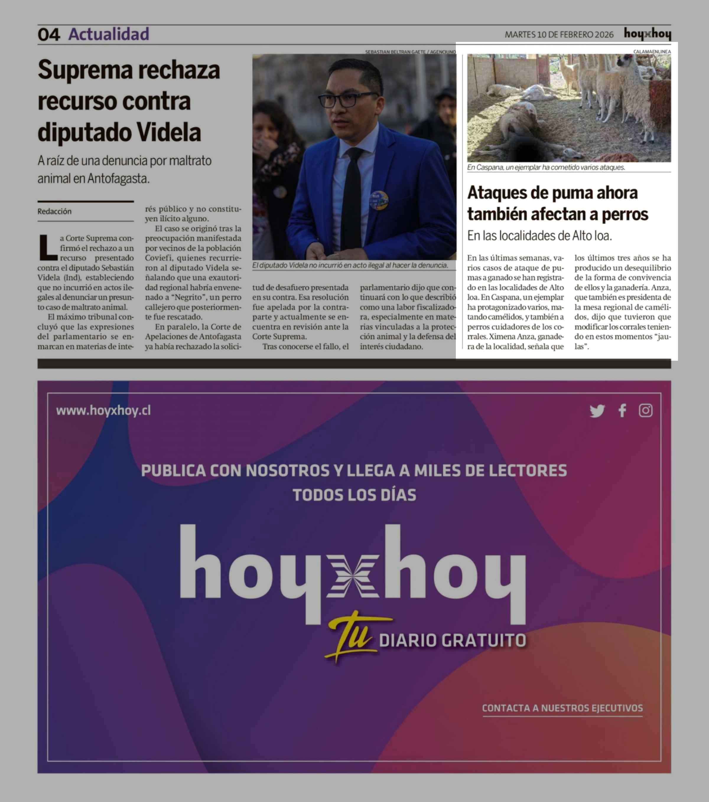 Ataques de puma ahora también afectan a perros 10-02-2026 Hoy x Hoy Antofagasta |
