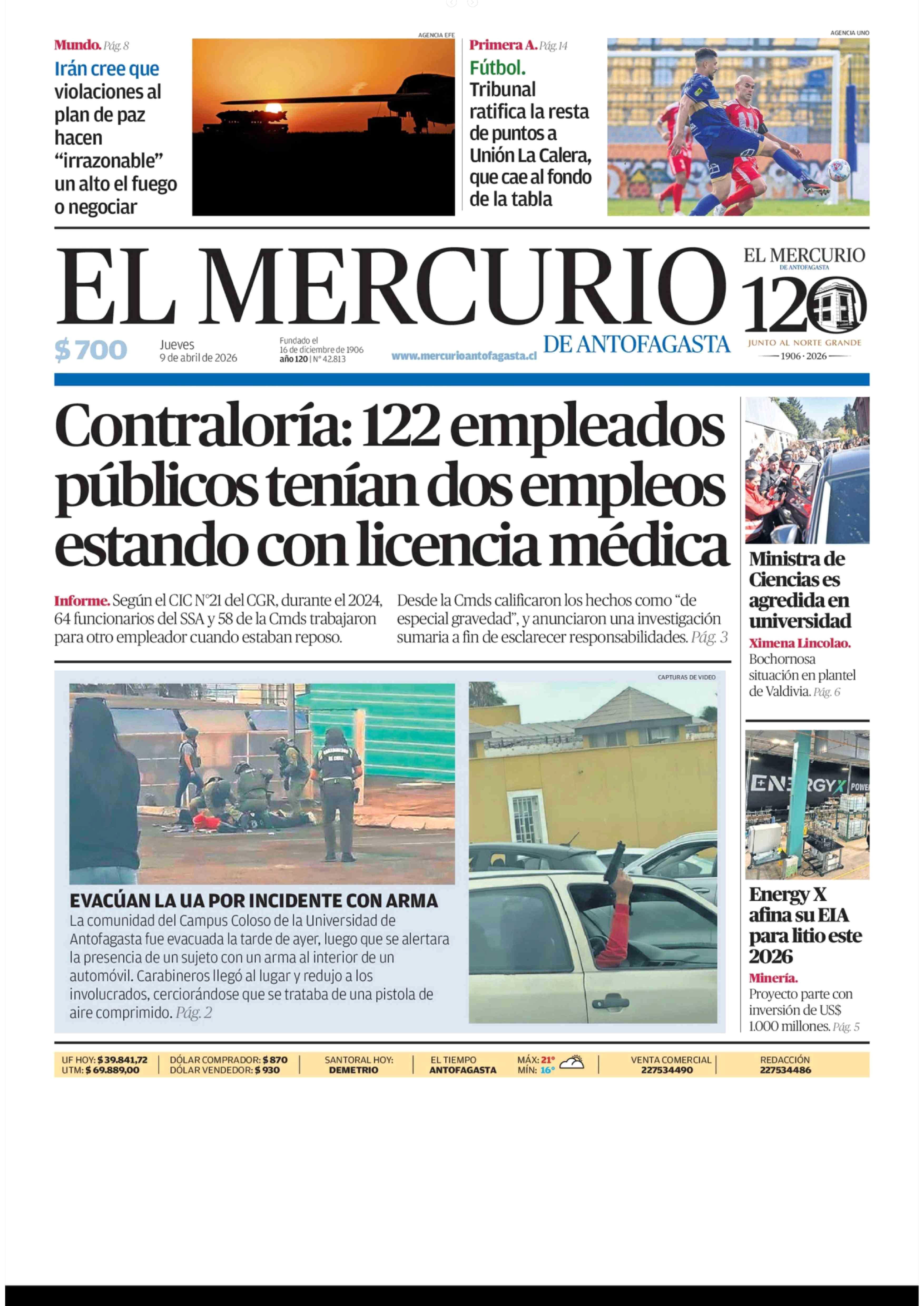 Fecha: 09-04-2026 Sector: Portada Región: Región de Antofagasta