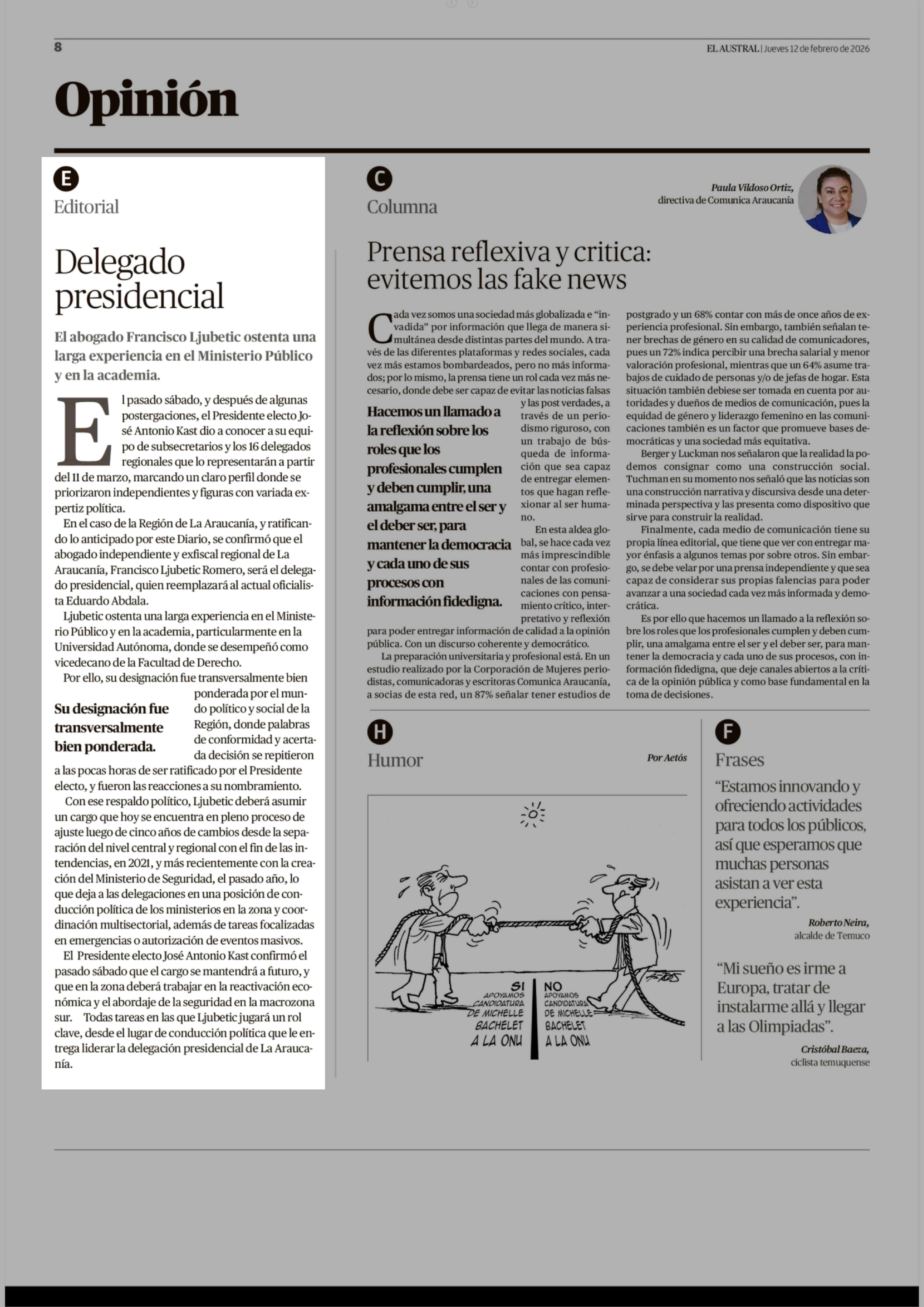 Editorial: Delegado presidencial 12-02-2026 El Austral de la Araucanía |