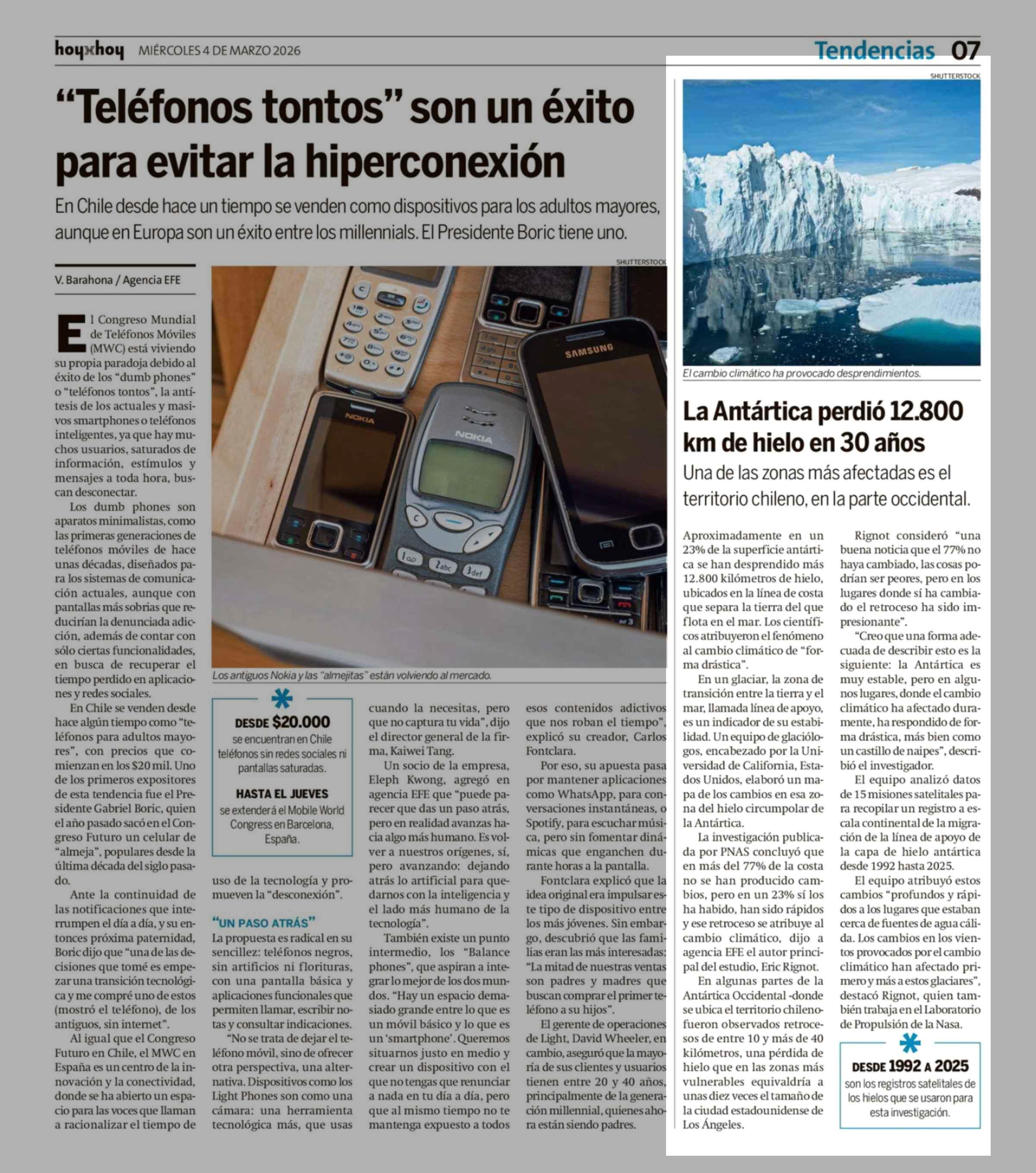 Título: La Antártica perdió 12.800 km de hielo en 30 años