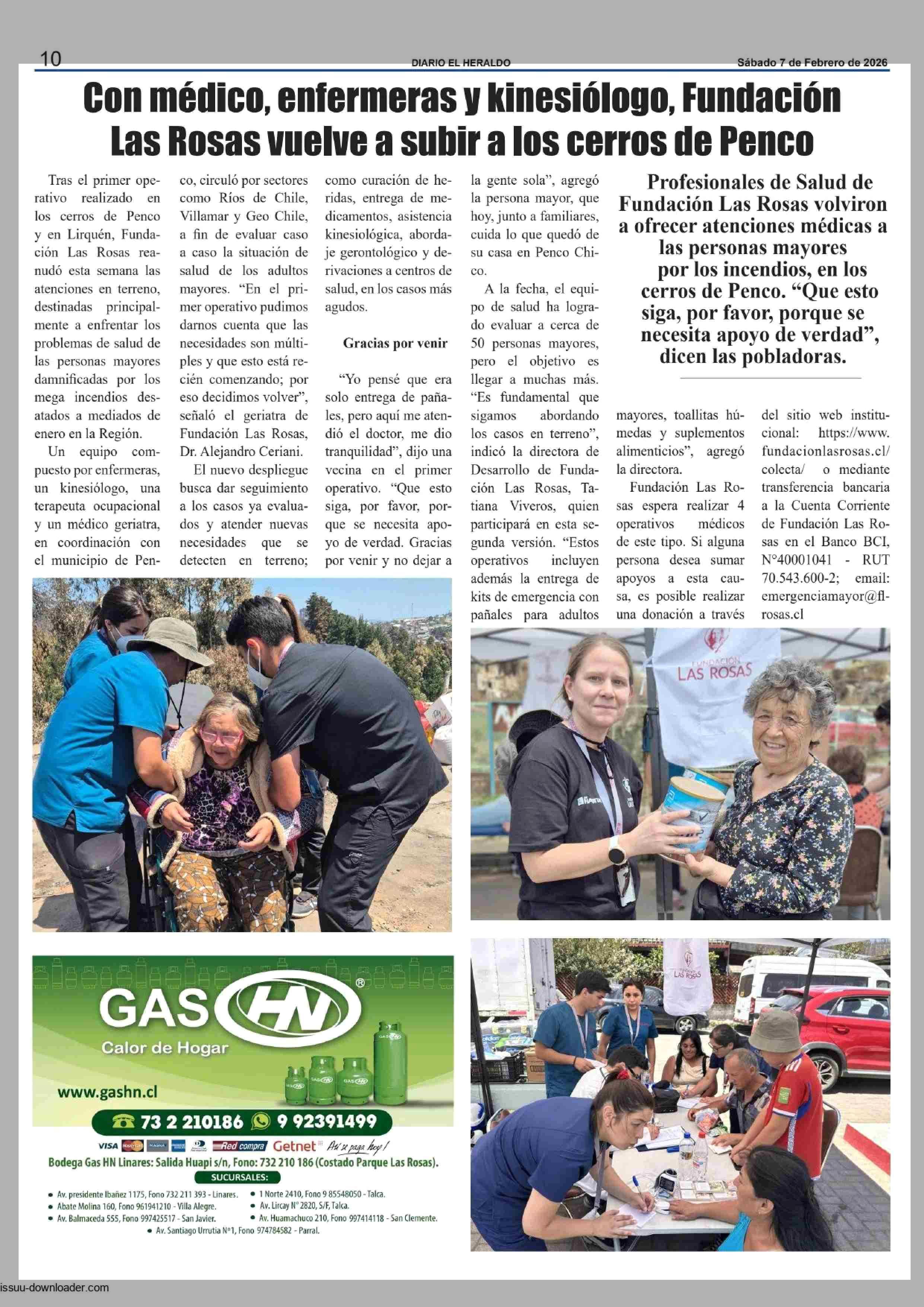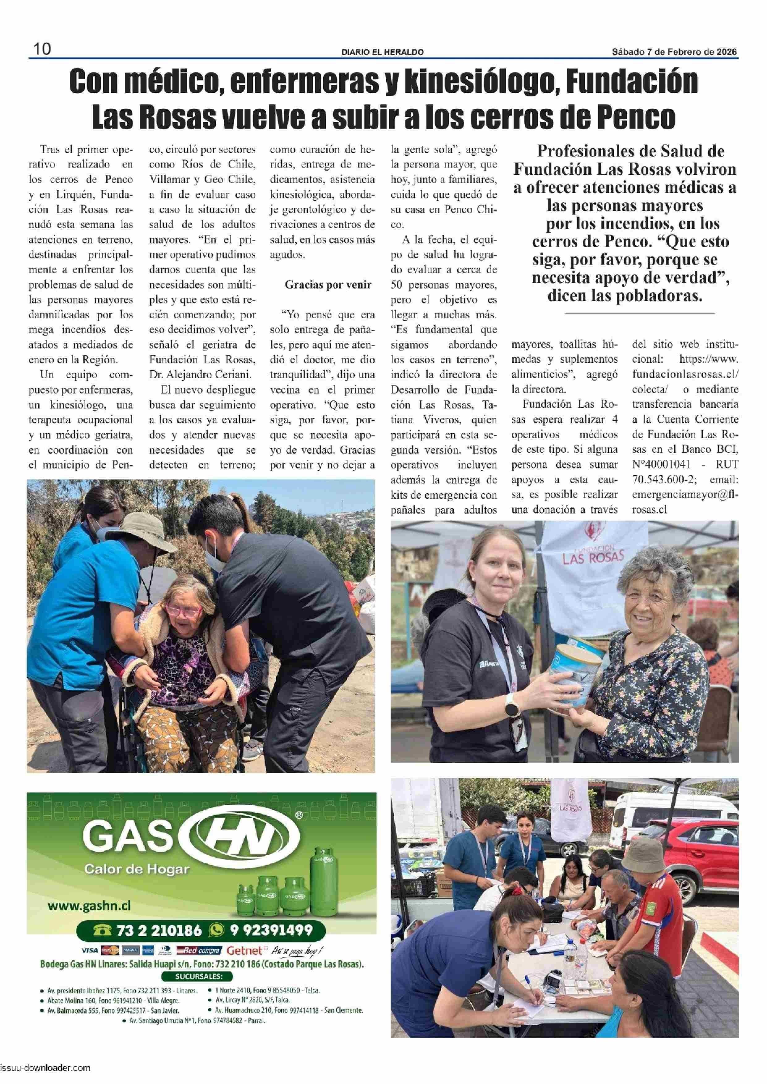 Con médico, enfermeras y kinesiólogo, Fundación Las Rosas vuelve a subir a los cerros de Penco 07-02-2026 El Heraldo |