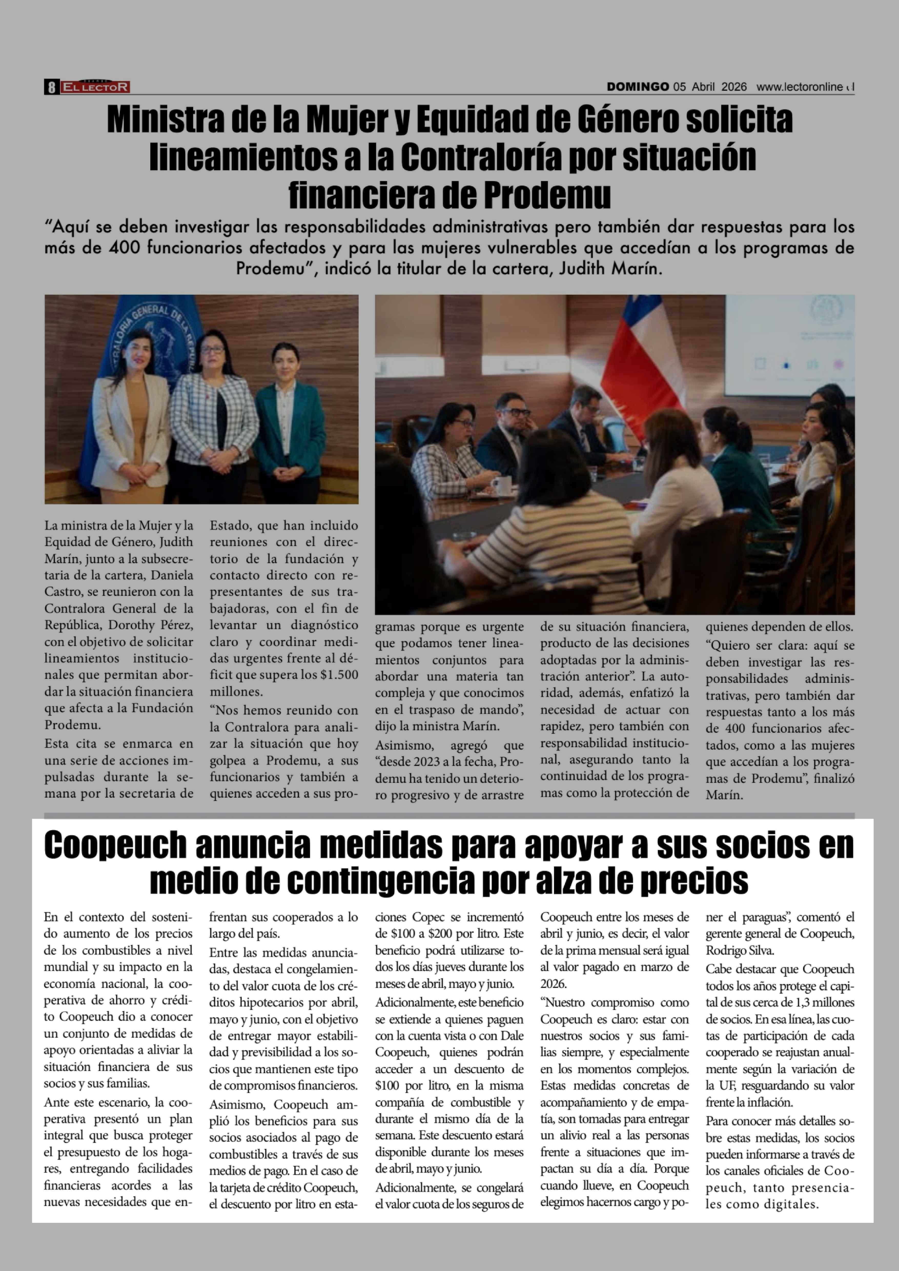 Coopeuch anuncia medidas para apoyar a sus socios en medio de contingencia por alza de precios 05-04-2026 El Lector |