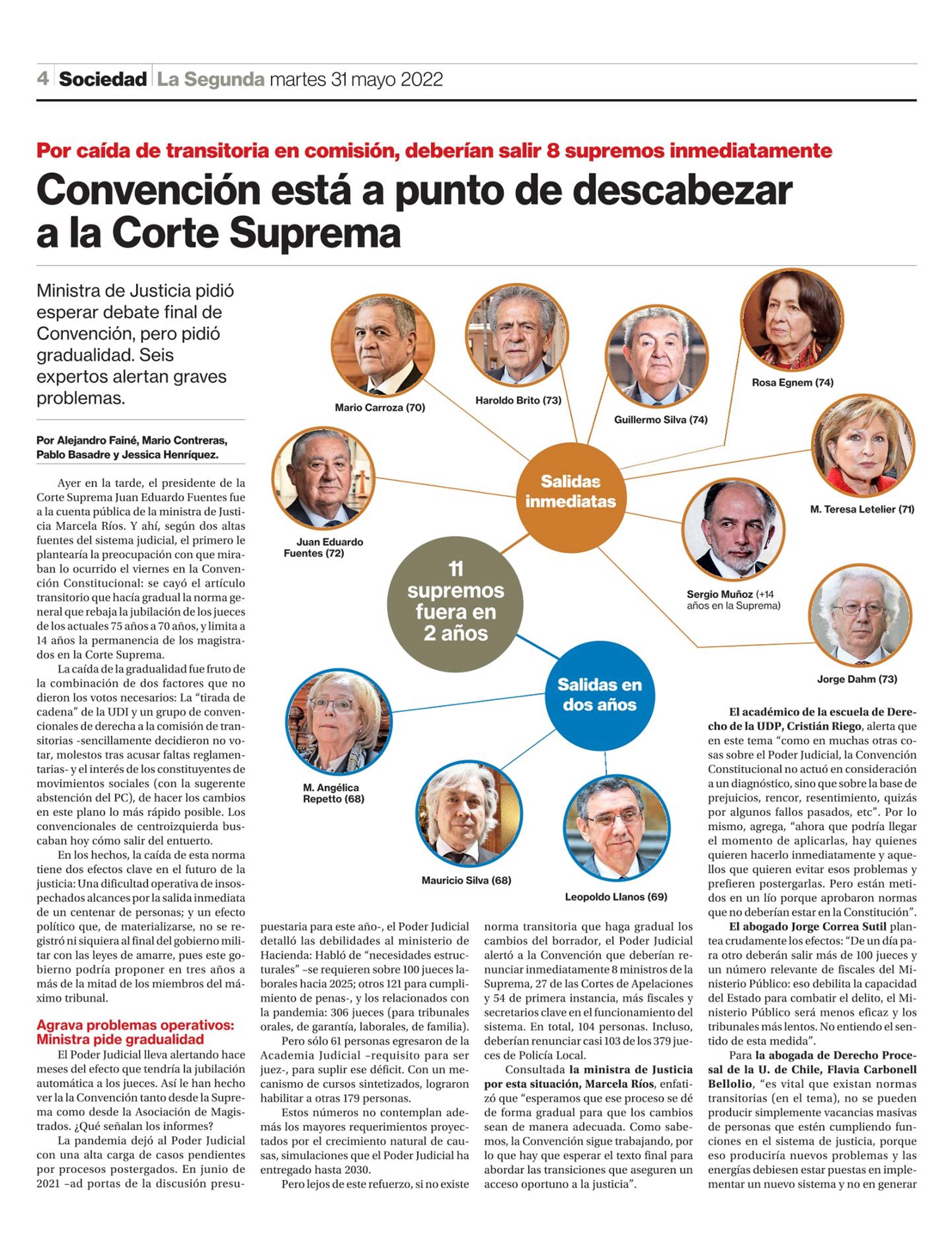 Convención está a punto de descabezar a la Corte Suprema 31-05-2022 La Segunda |