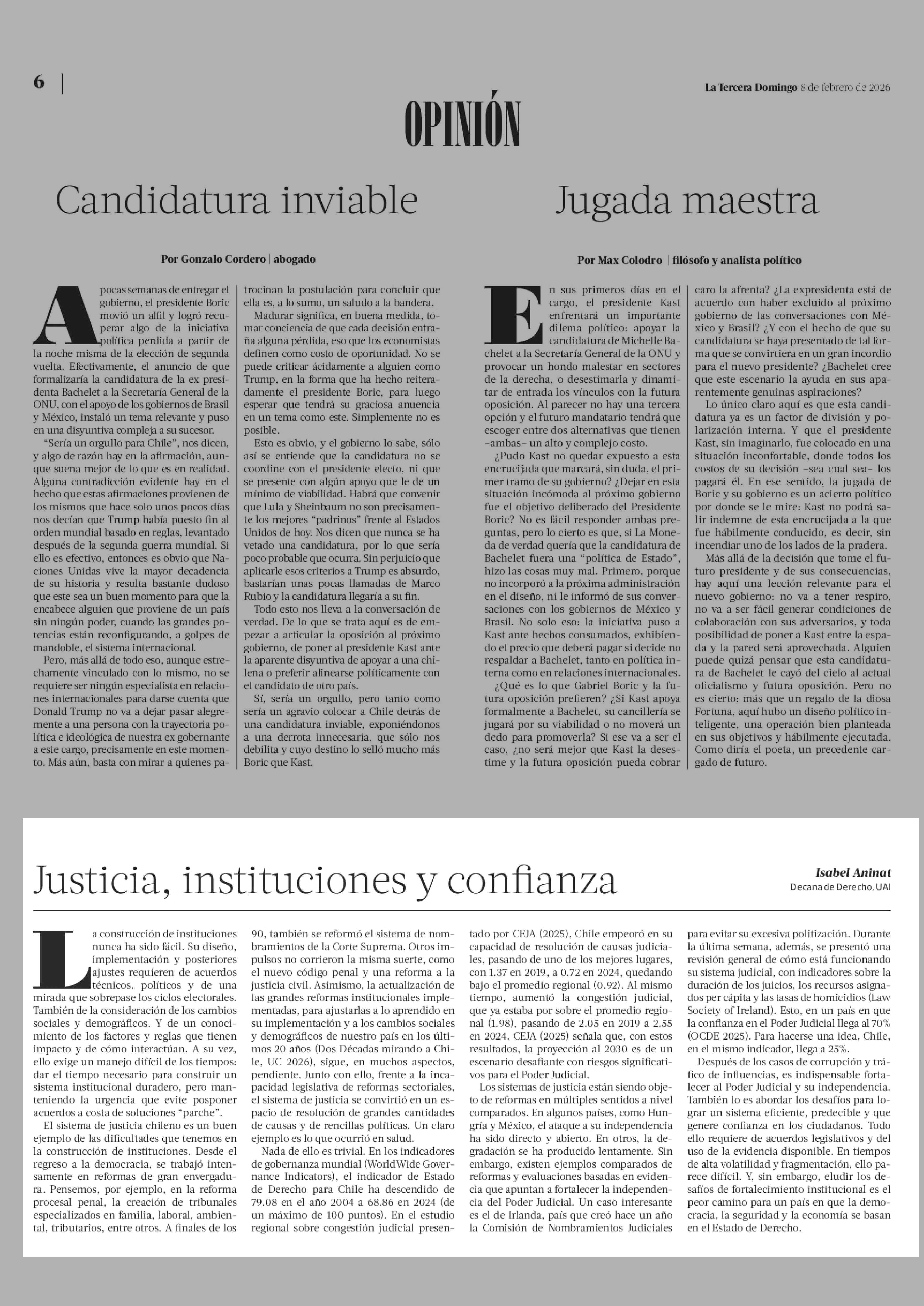 Fecha: 08-02-2026 Sector: Columnas de Opinión Región: Región Metropolitana de Santiago