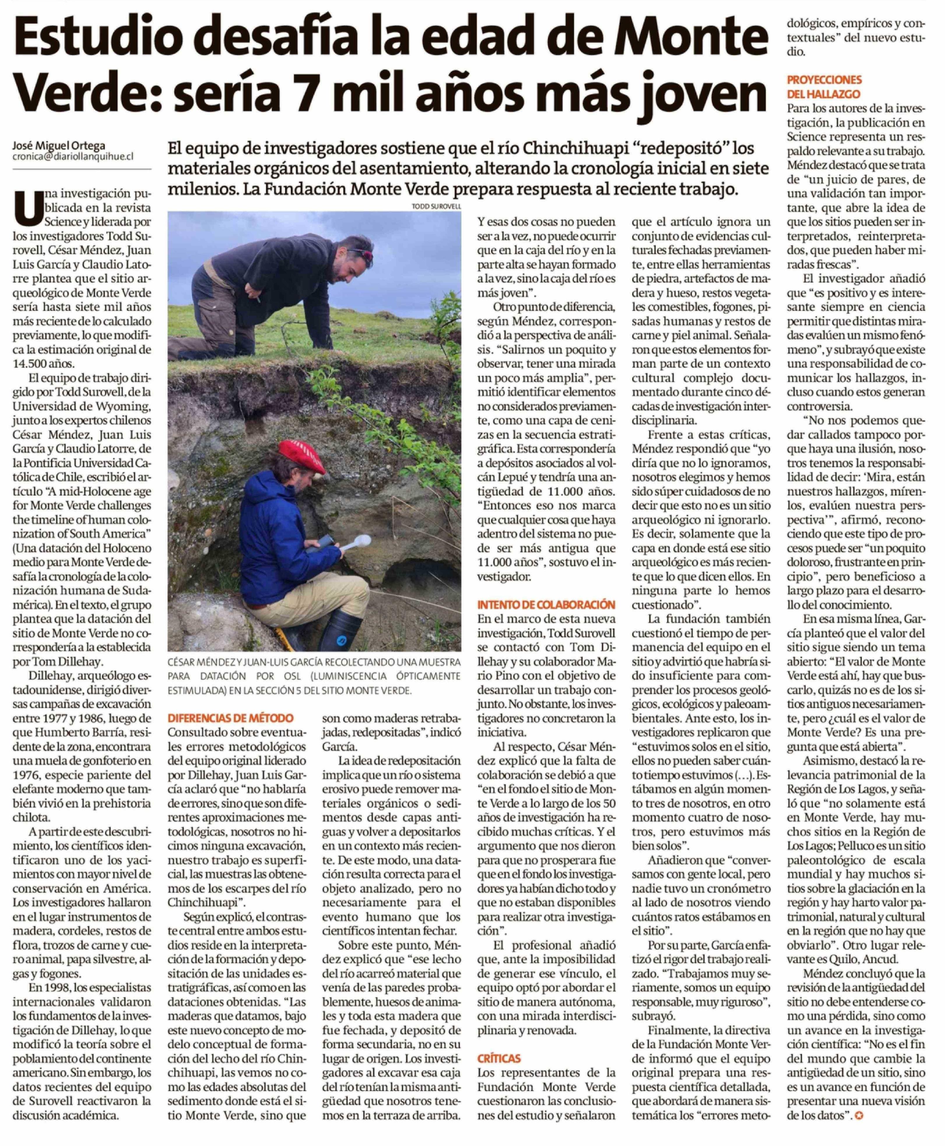 Estudio desafía la edad de Monte Verde: sería 7 mil años más joven 20-03-2026 La Estrella de Chiloé |