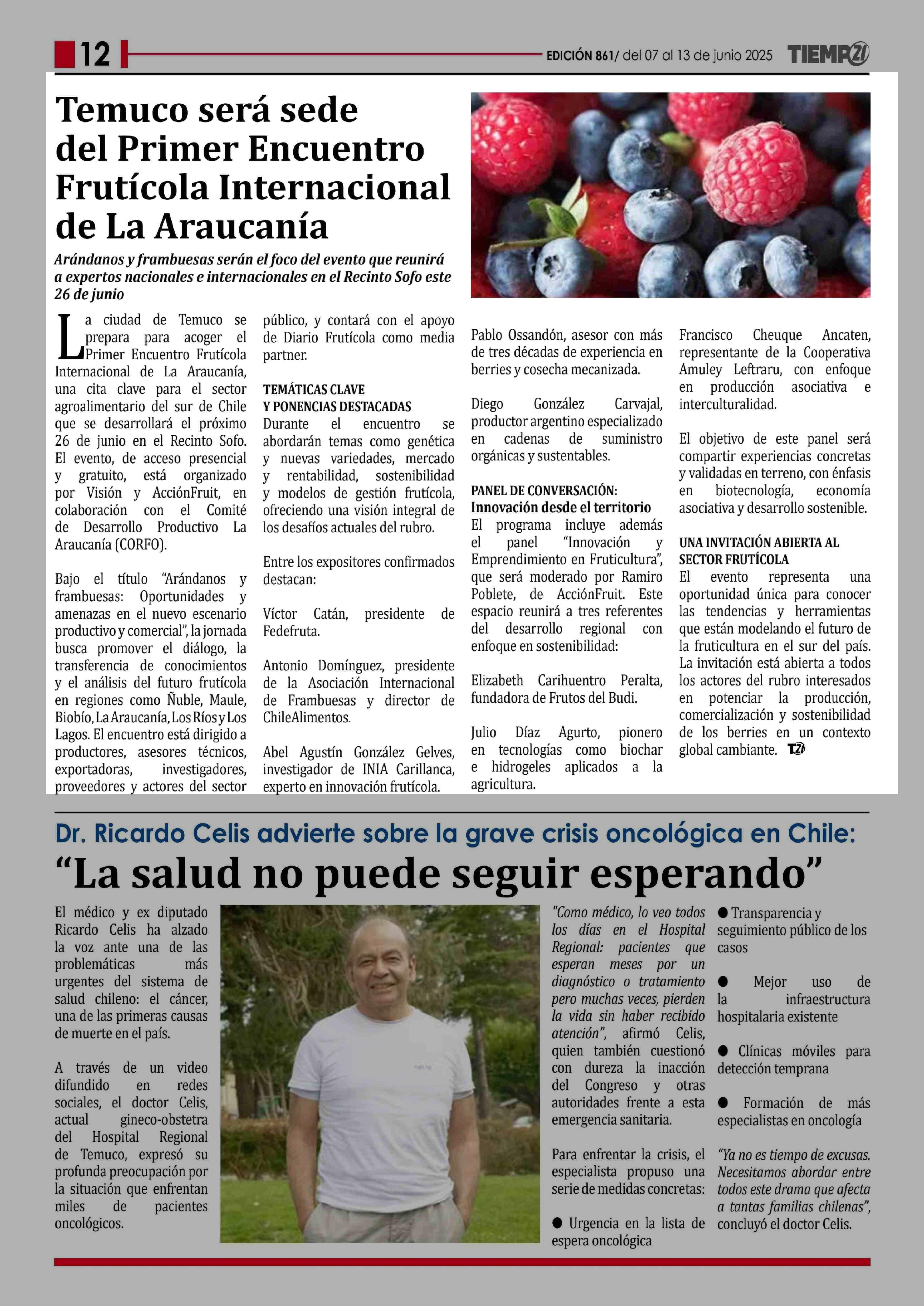 Temuco será sede del Primer Encuentro Frutícola Internacional de La Araucanía 07-06-2025 Tiempo 21 |