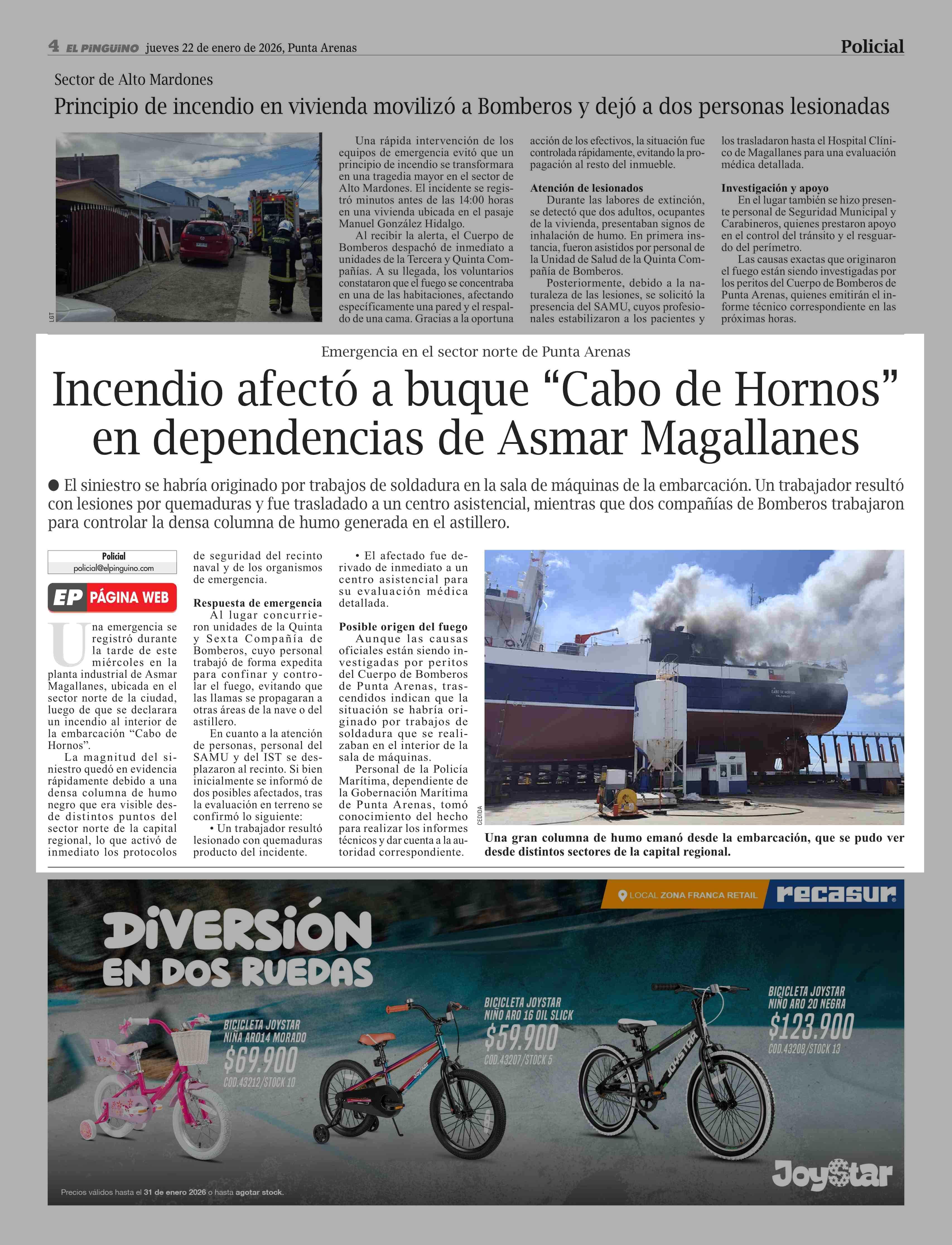 Fecha: 22-01-2026 Sector: Noticia general Región: Región de Magallanes y de la Antártica Chilena
