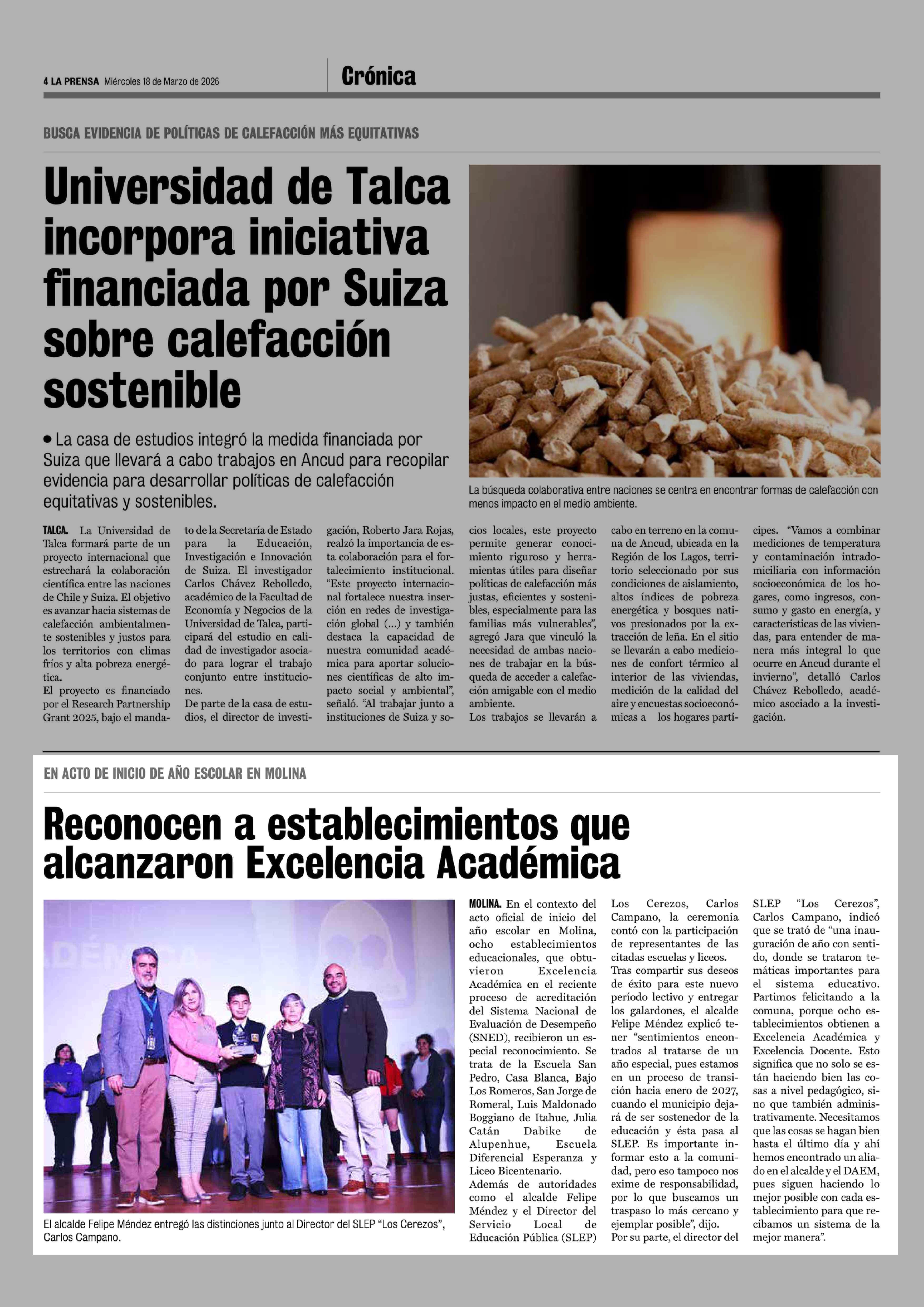 Reconocen a establecimientos que alcanzaron Excelencia Académica 18-03-2026 La Prensa de Curicó |