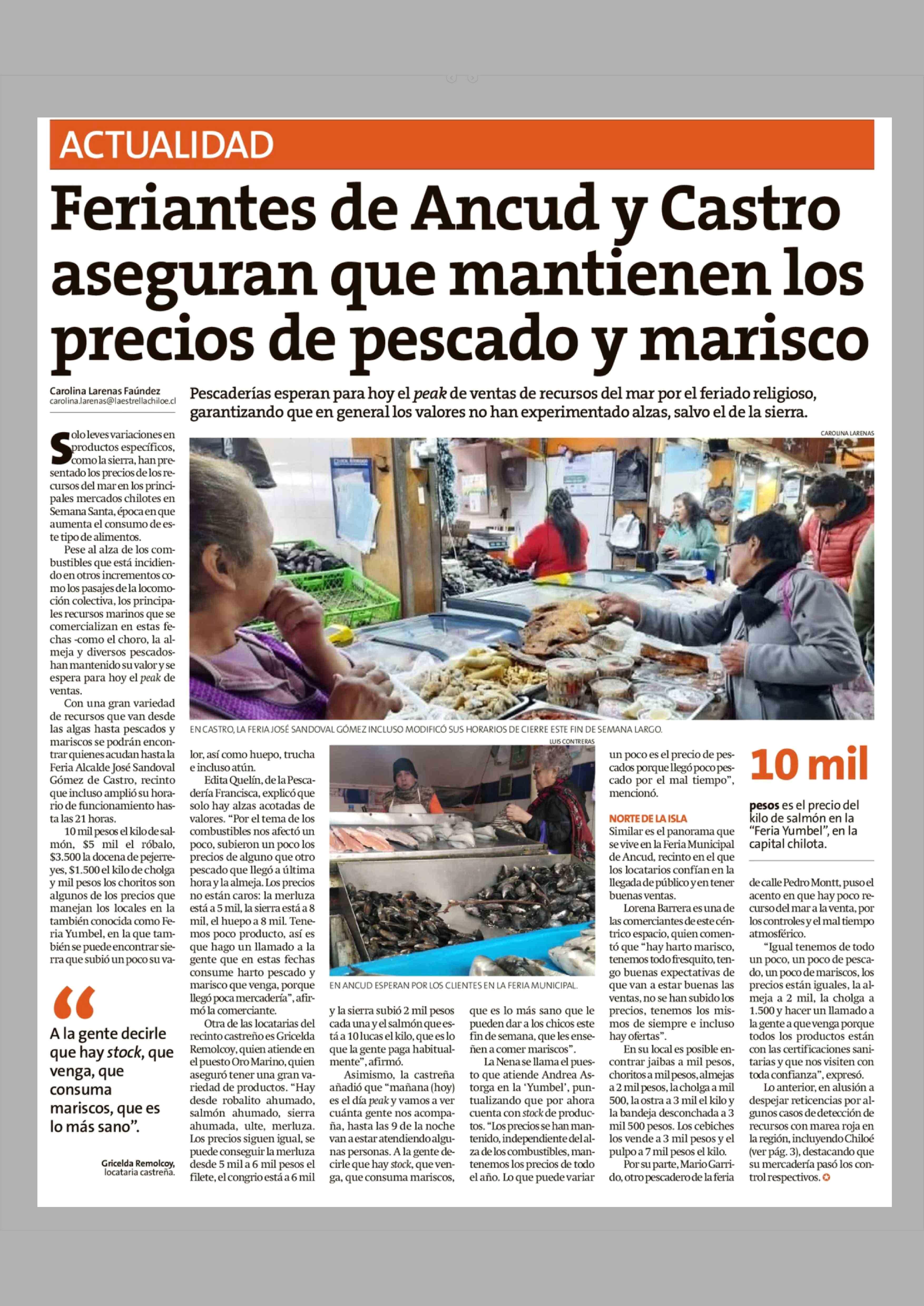 Feriantes de Ancud y Castro aseguran que mantienen los precios de pescado y marisco 03-04-2026 La Estrella de Chiloé |