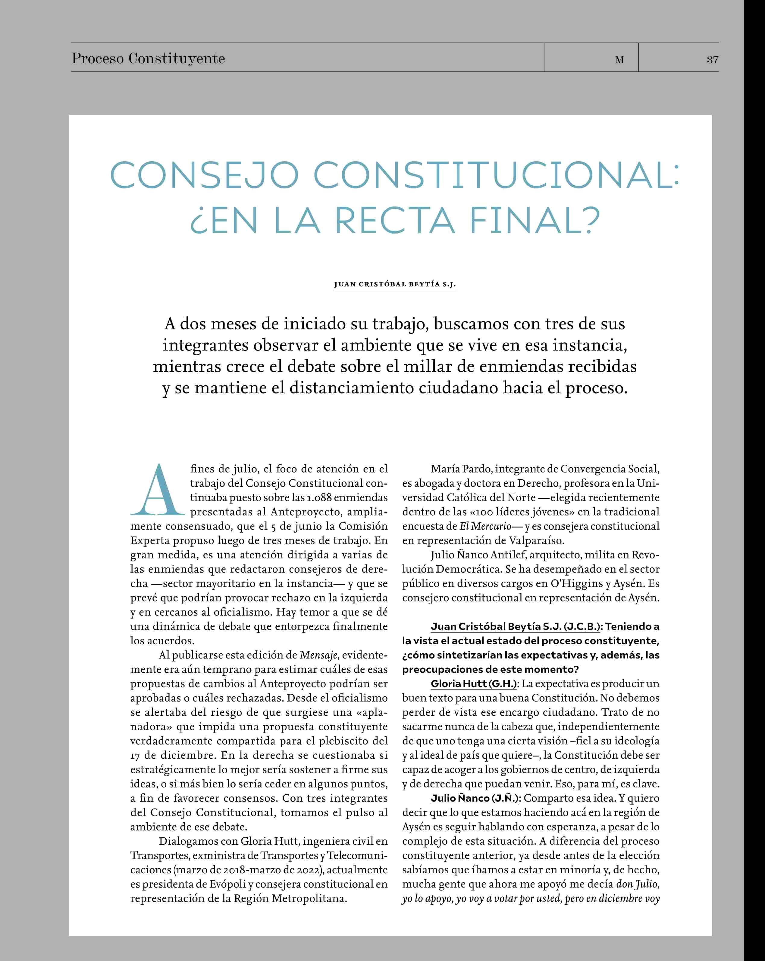 CONSEJO CONSTITUCIONAL: ¿EN LA RECTA FINAL? 02-08-2023 Revista Mensaje |