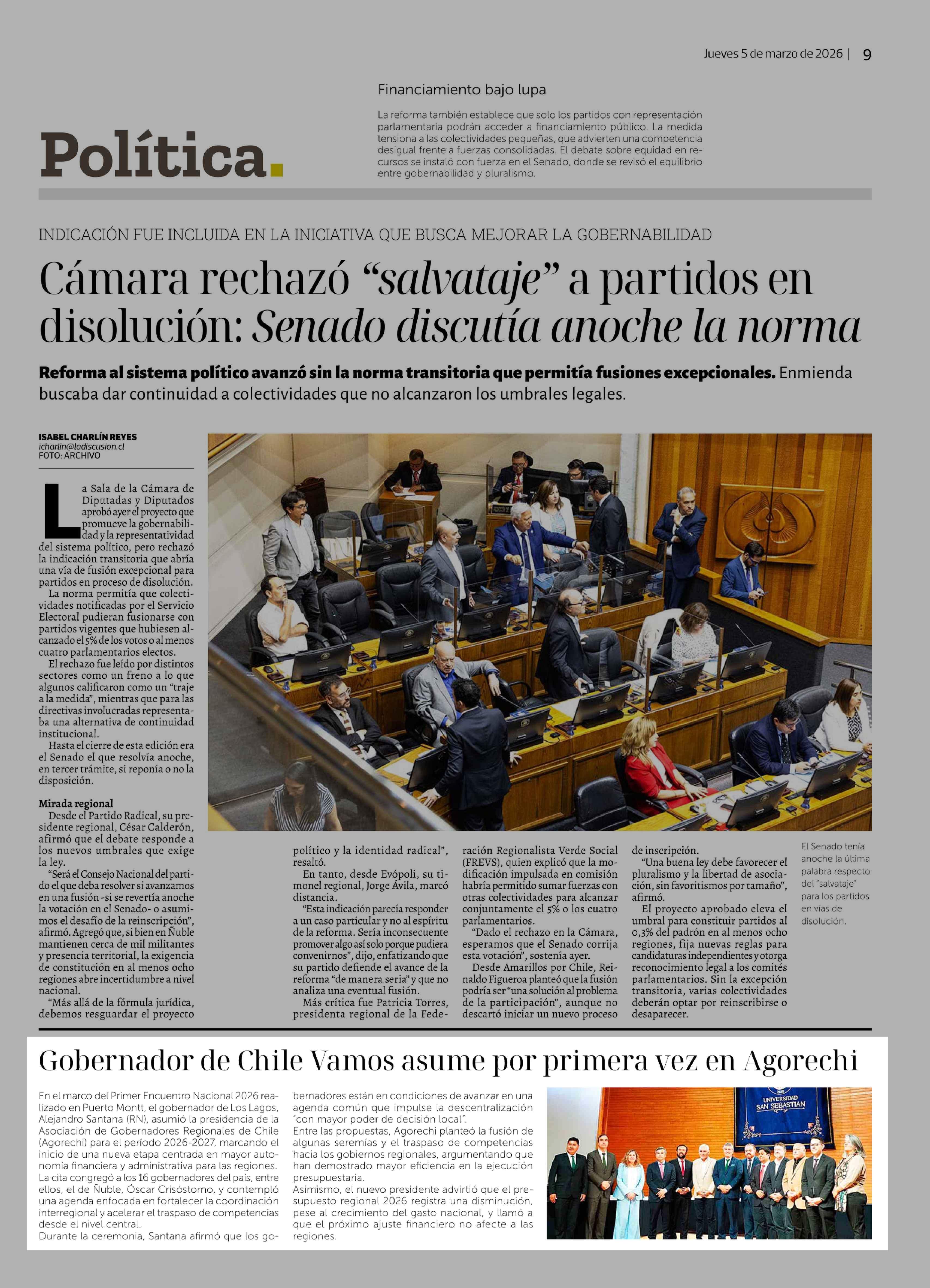 Gobernador de Chile Vamos asume por primera vez en Agorechi 05-03-2026 La Discusión |