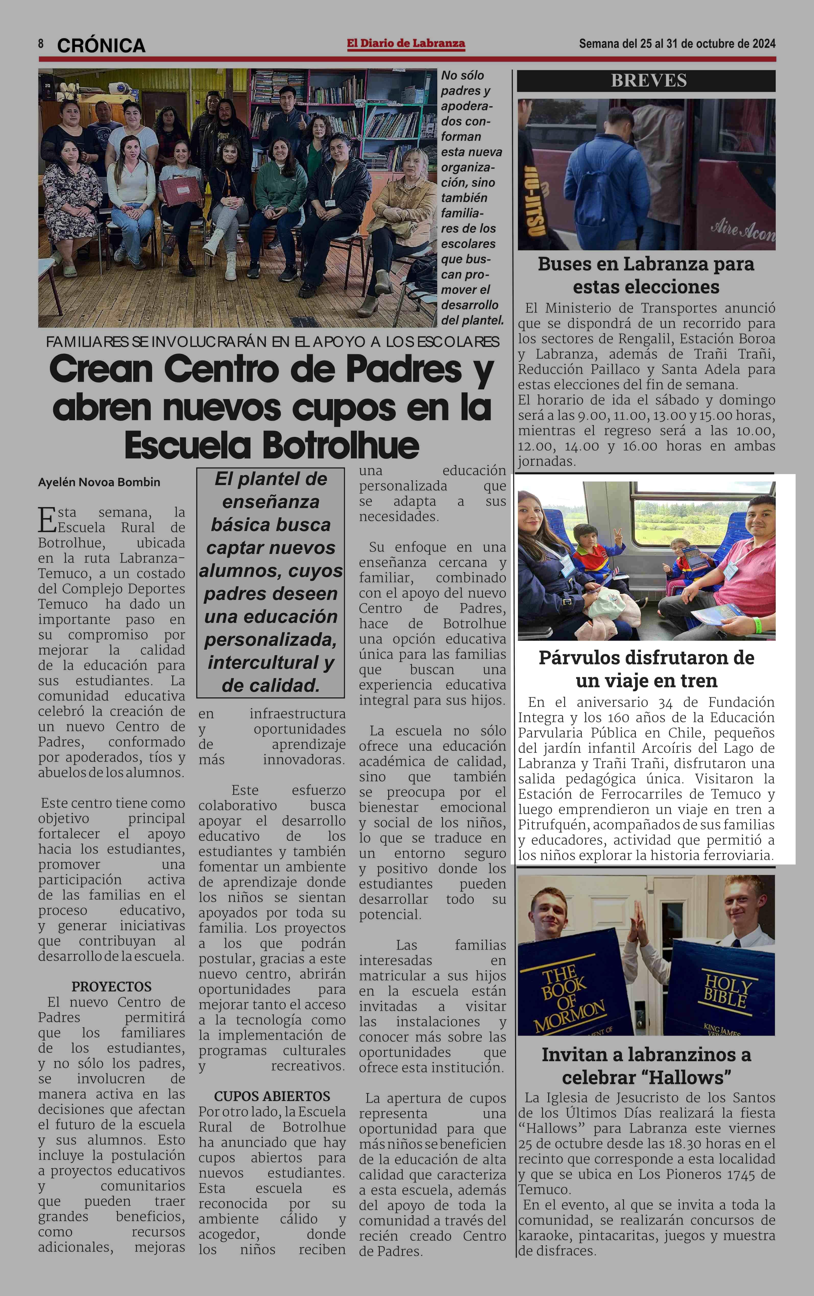 Párvulos disfrutaron de un viaje en tren 25-10-2024 EL DIARIO DE LABRANZA |