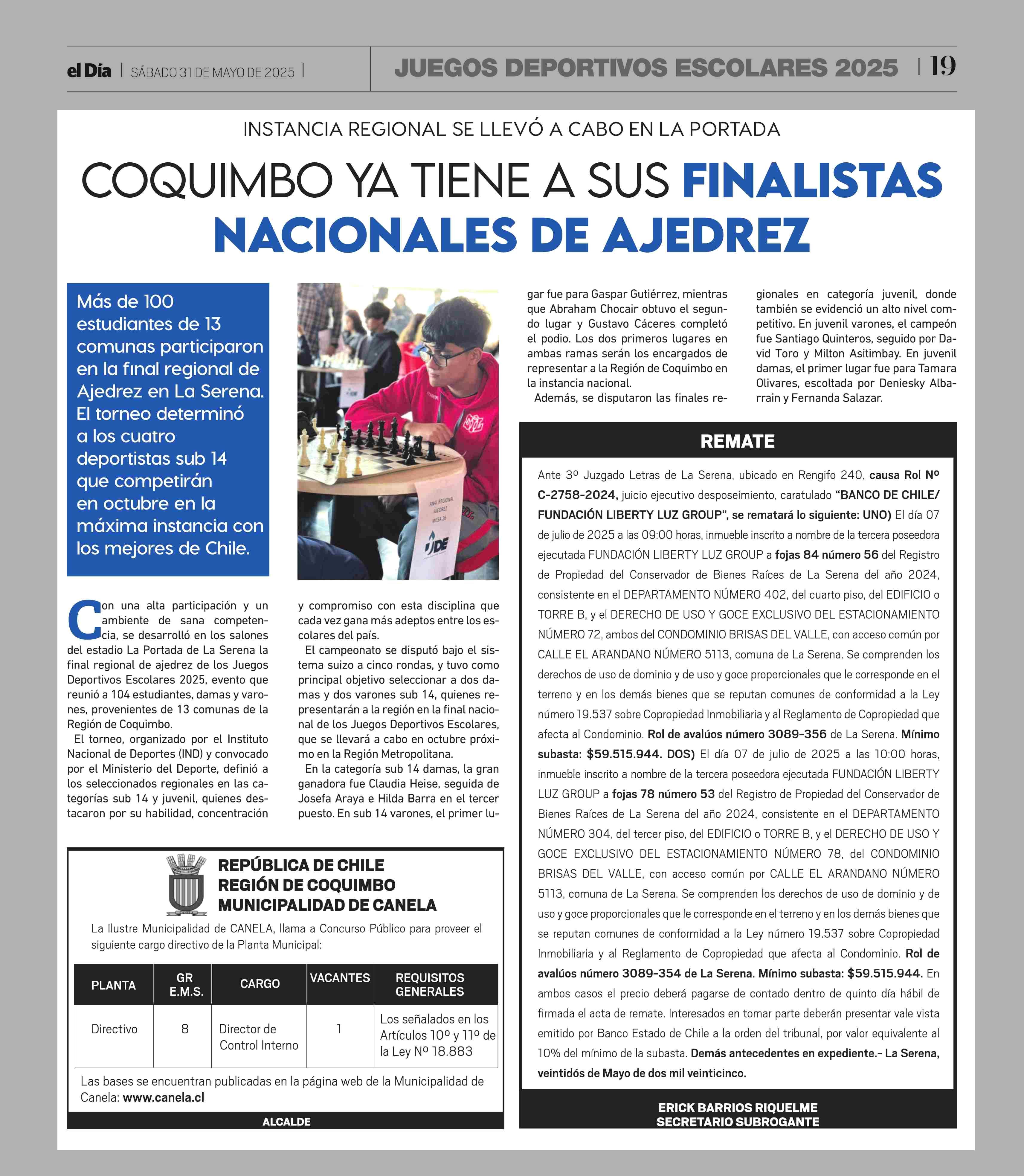 Coquimbo ya tiene a sus finalistas nacionales de ajedrez 31-05-2025 El Día |