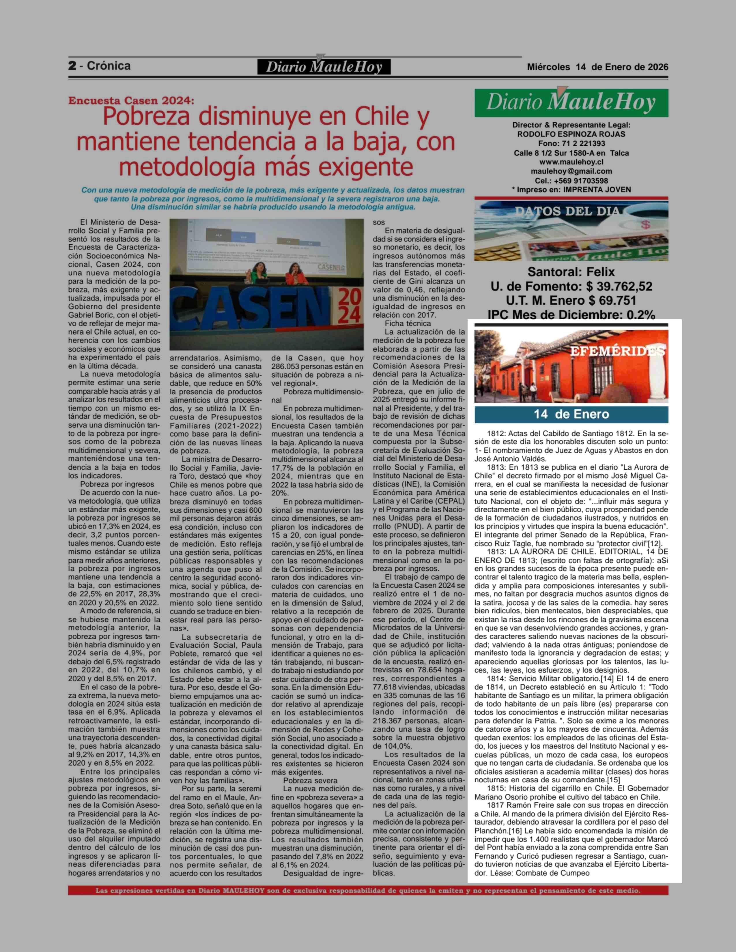 EFEMÉRIDES 14-01-2026 Maule Hoy |
