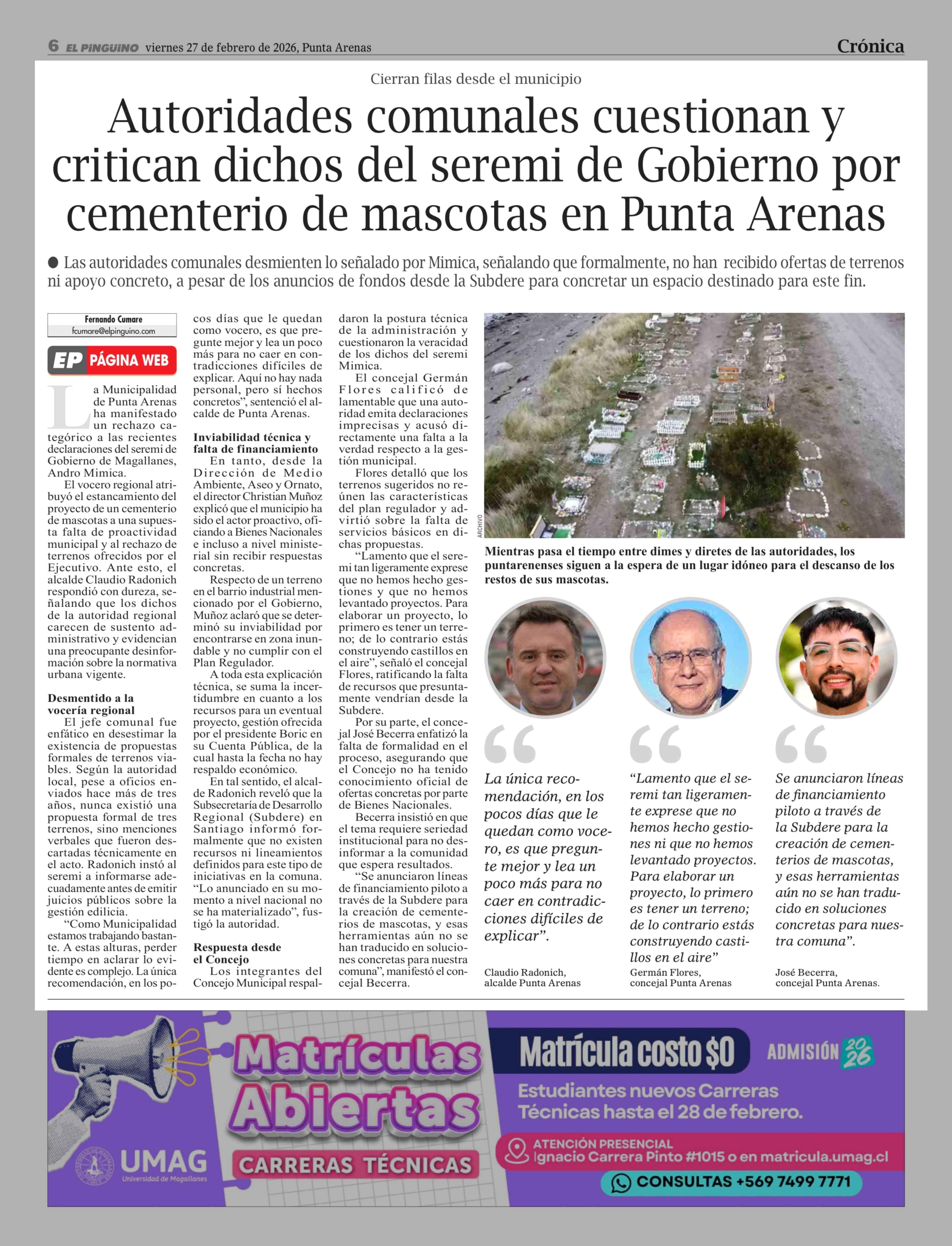 Título: Autoridades comunales cuestionan y critican dichos del seremi de Gobierno por cementerio de mascotas en Punta Arenas