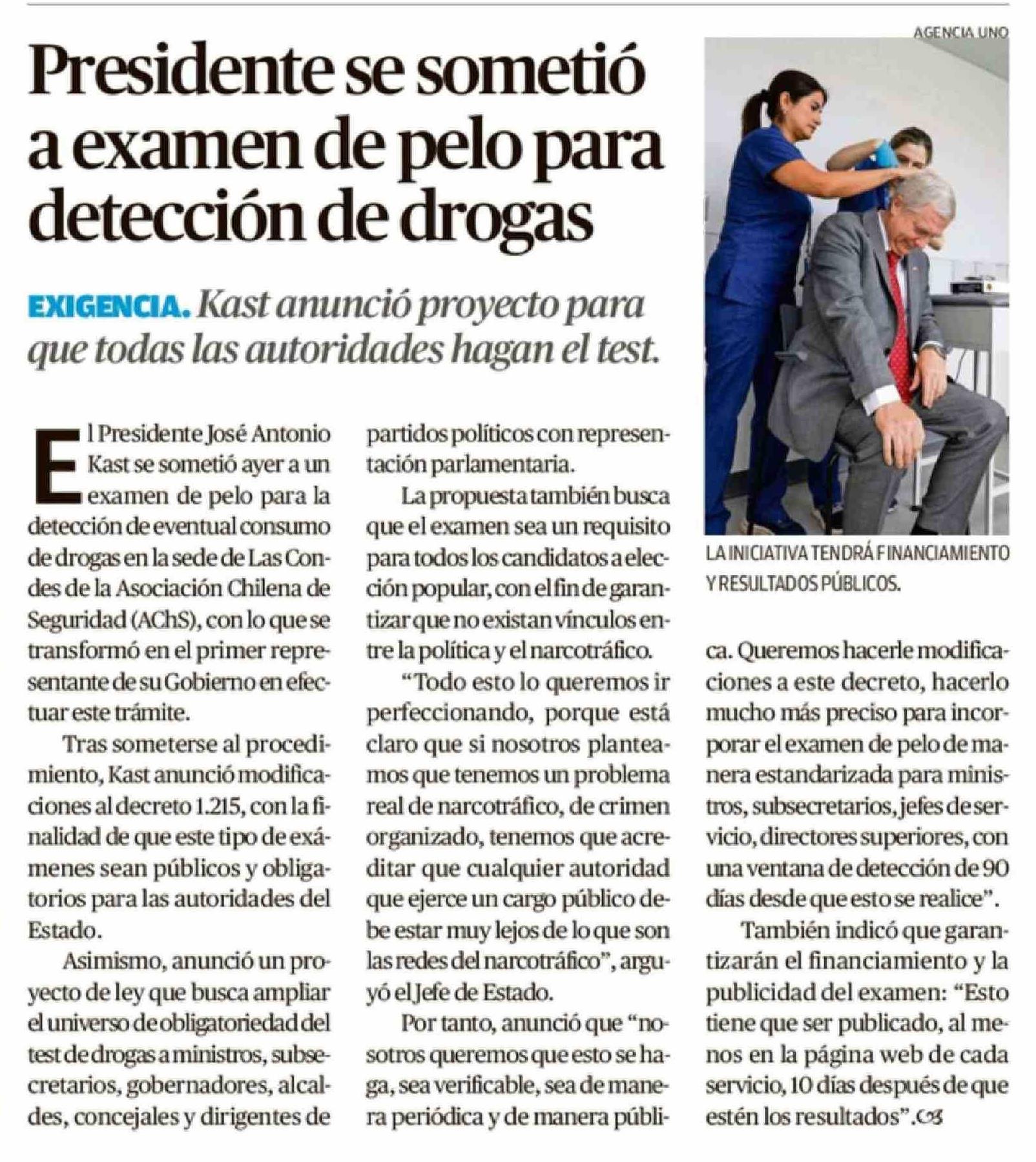 Título: Presidente se sometió a examen de pelo para detección de drogas