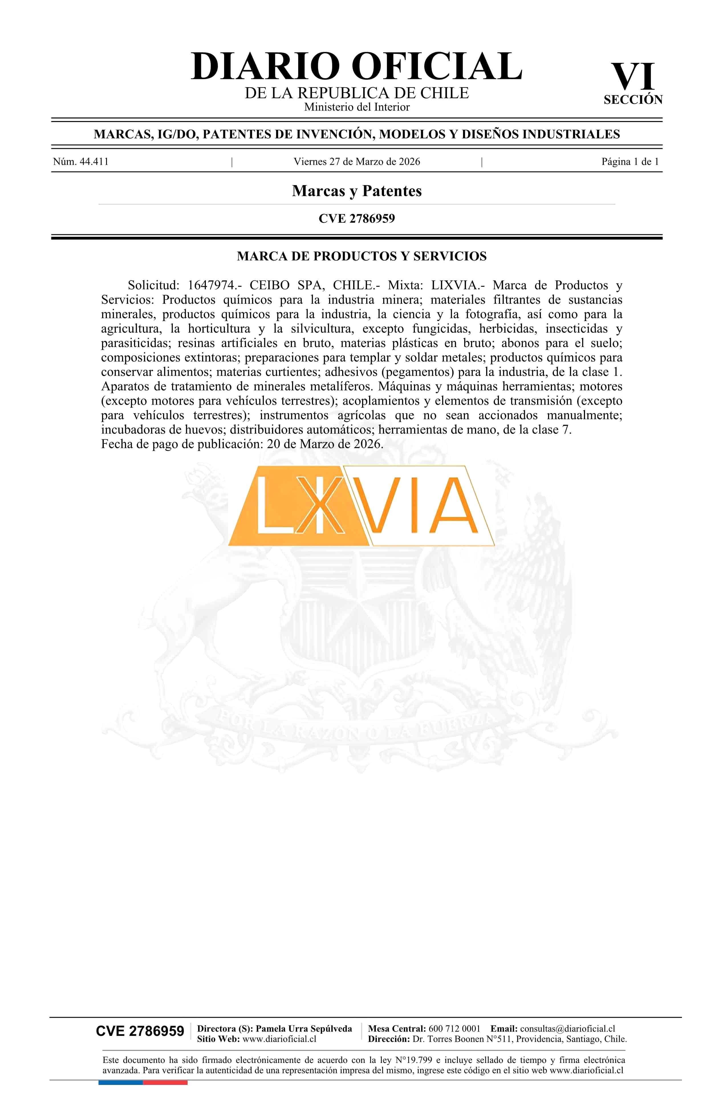 Solicitud número 1647974.- LIXVIA 27-03-2026 Diario Oficial Edición Electrónica |
