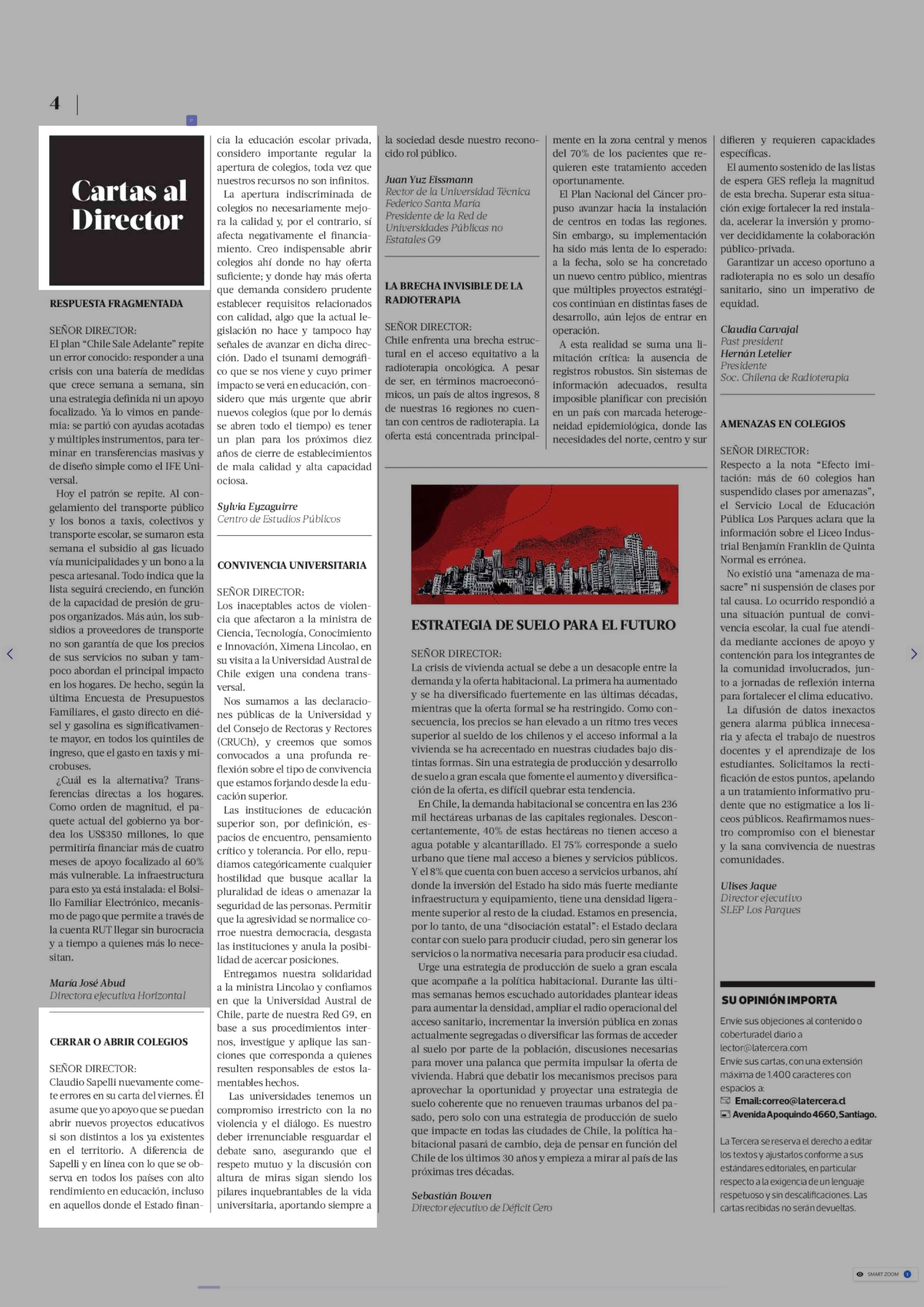 Título: CARTAS: CERRAR O ABRIR COLEGIOS