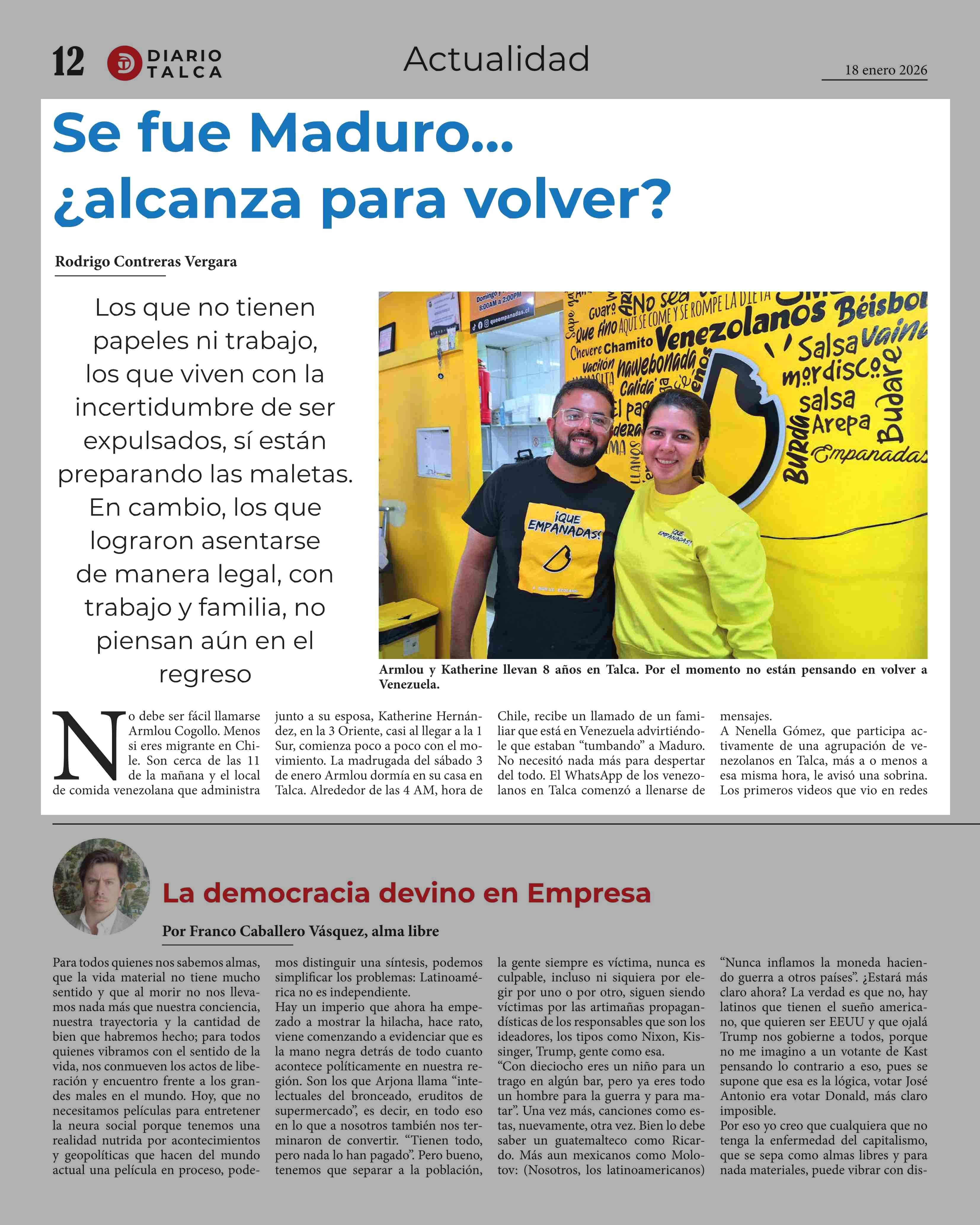 Fuente: Diario Talca (Diario Talca) Página(s): 12-13