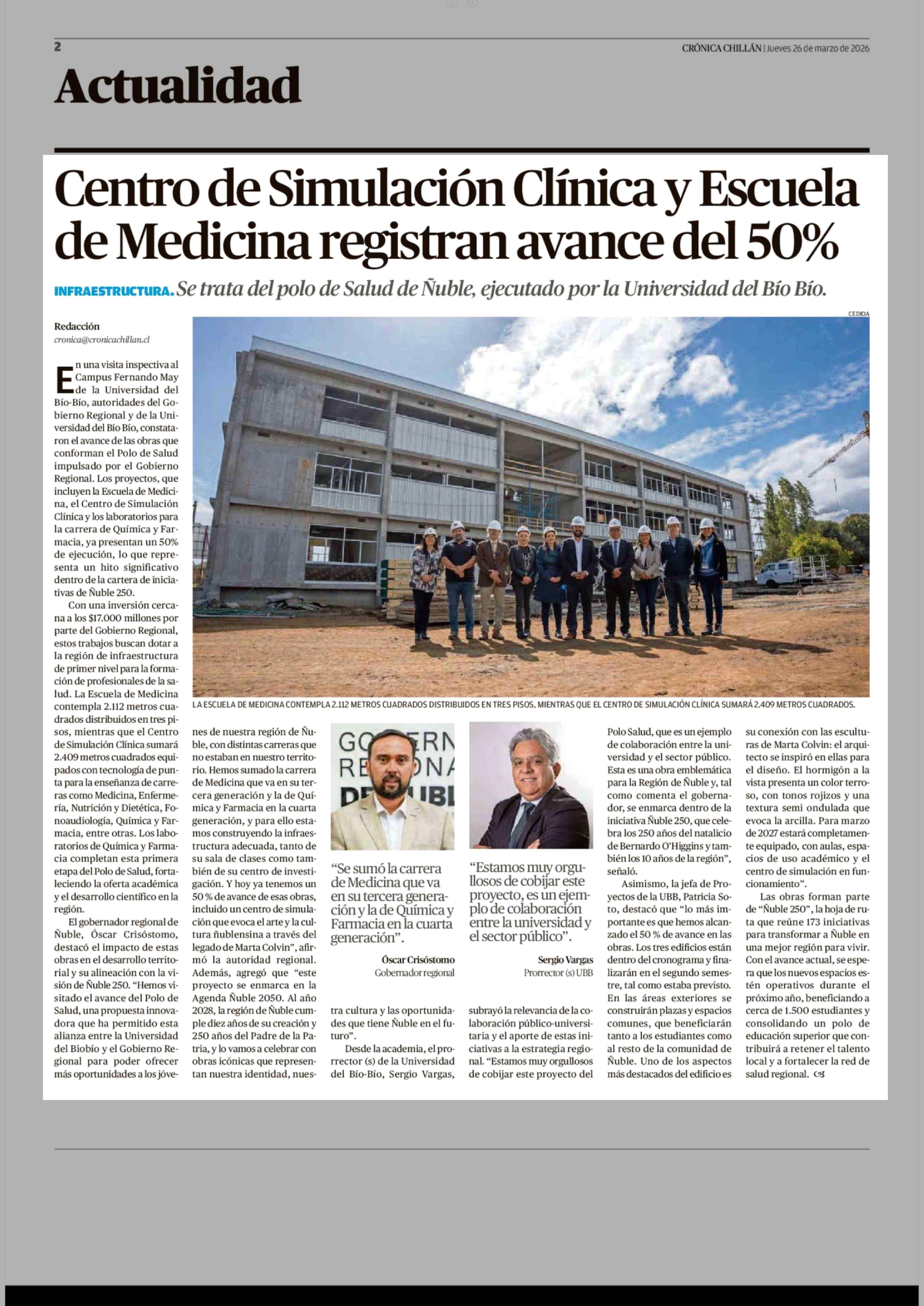 Fecha: 26-03-2026 Sector: Noticia general Región: Región del Ñuble