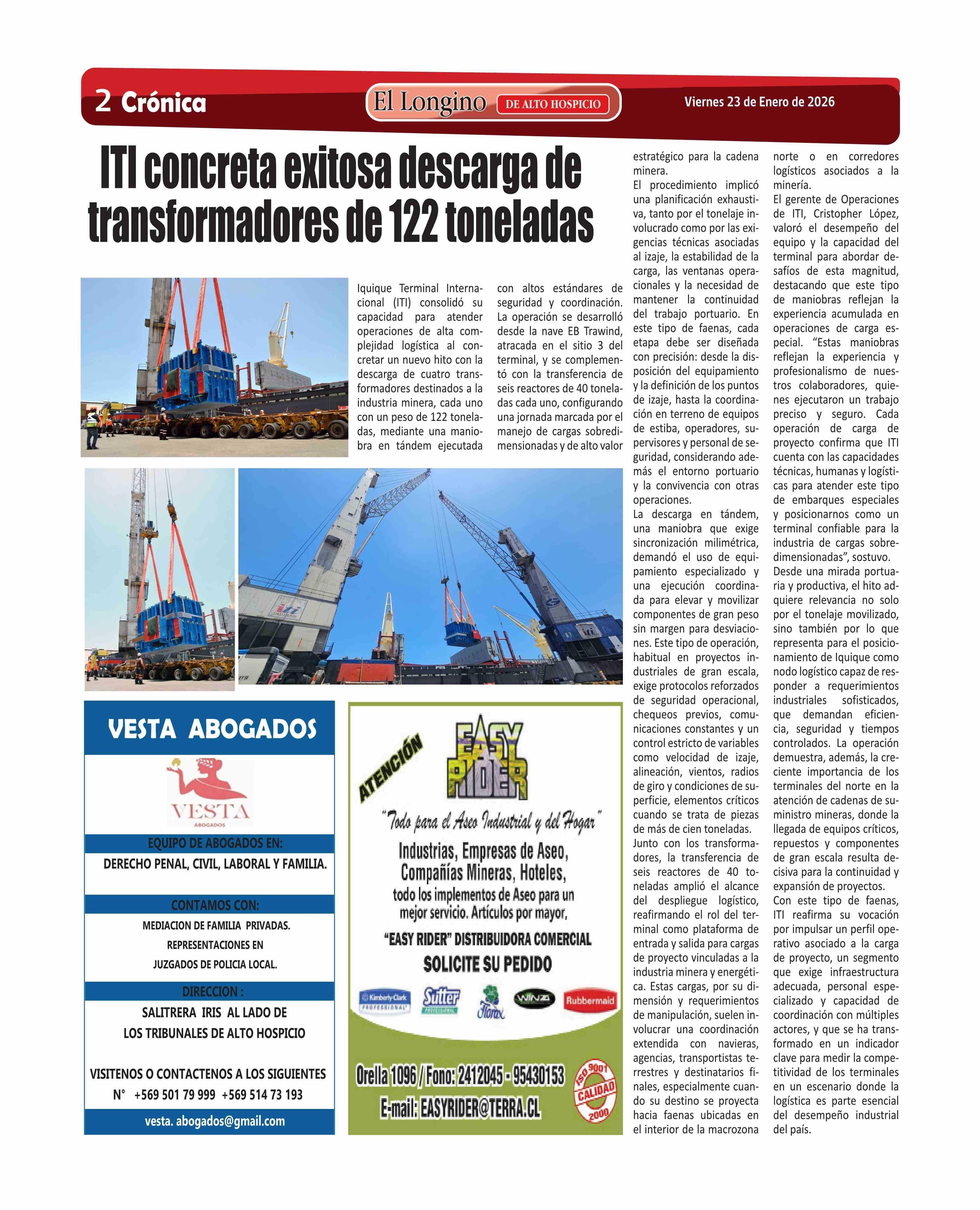 Fecha: 23-01-2026 Sector: Noticia general Región: Región de Tarapacá