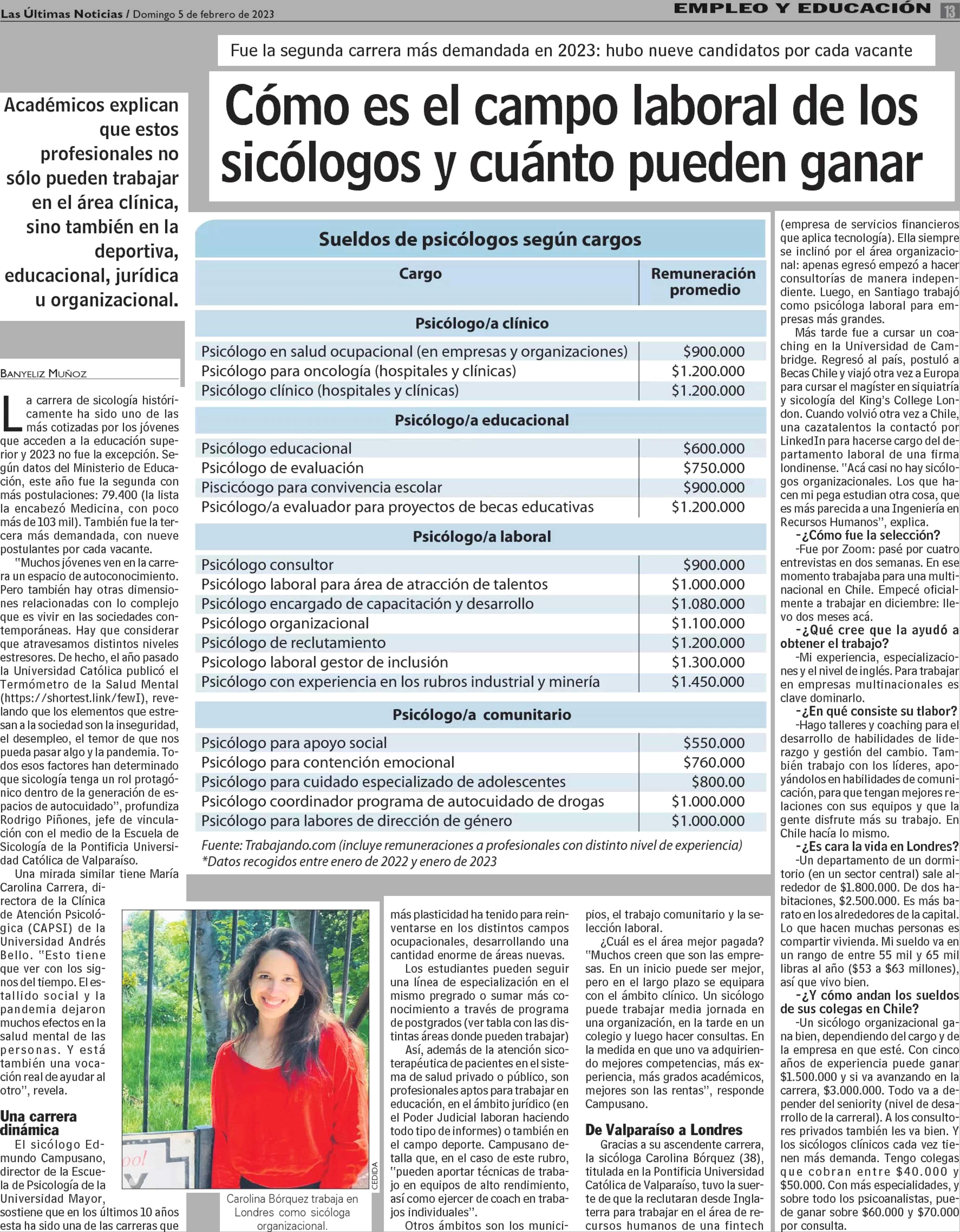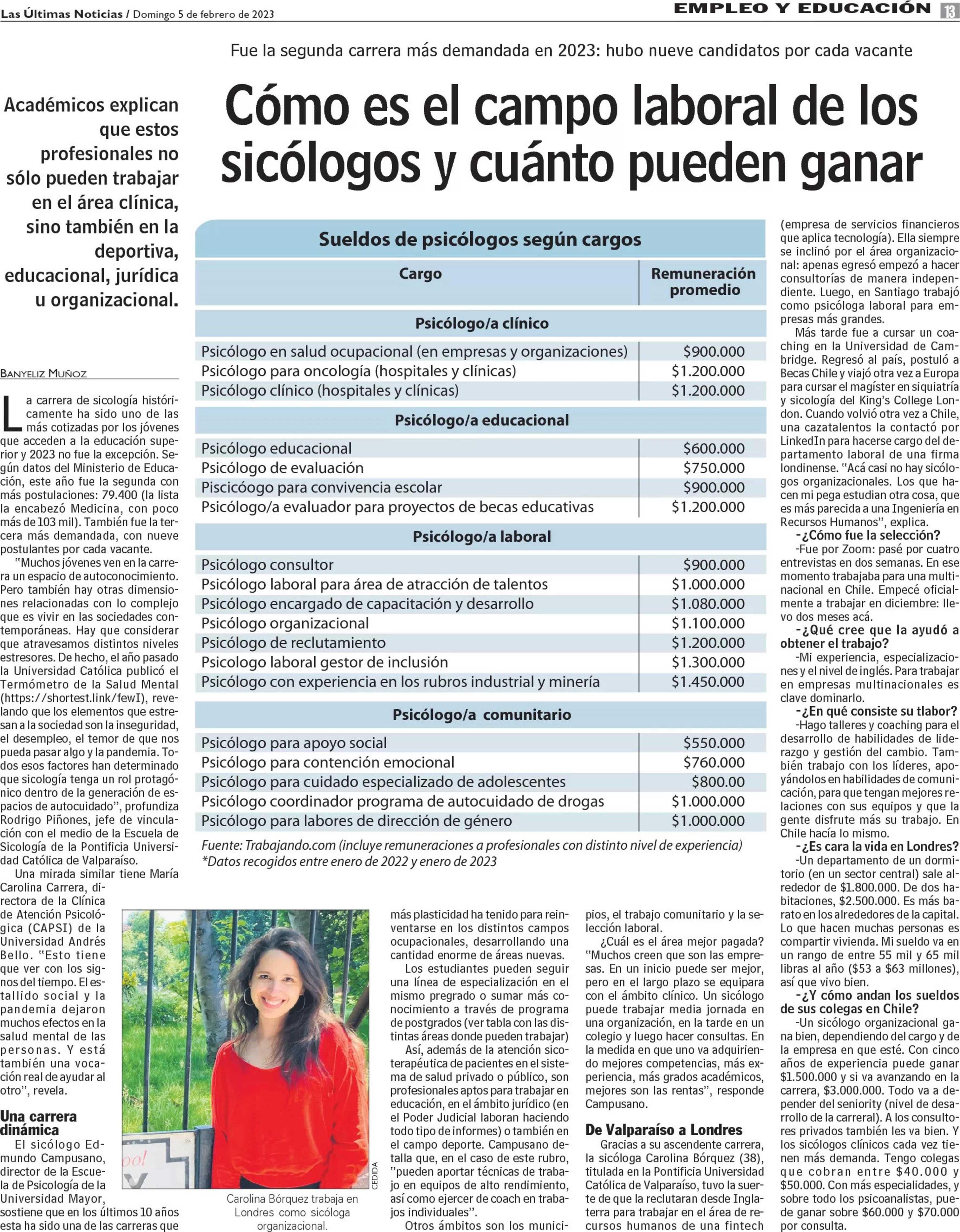 Cómo es el campo laboral de los sicólogos y cuánto pueden ganar 05-02-2023 Las Últimas Noticias |