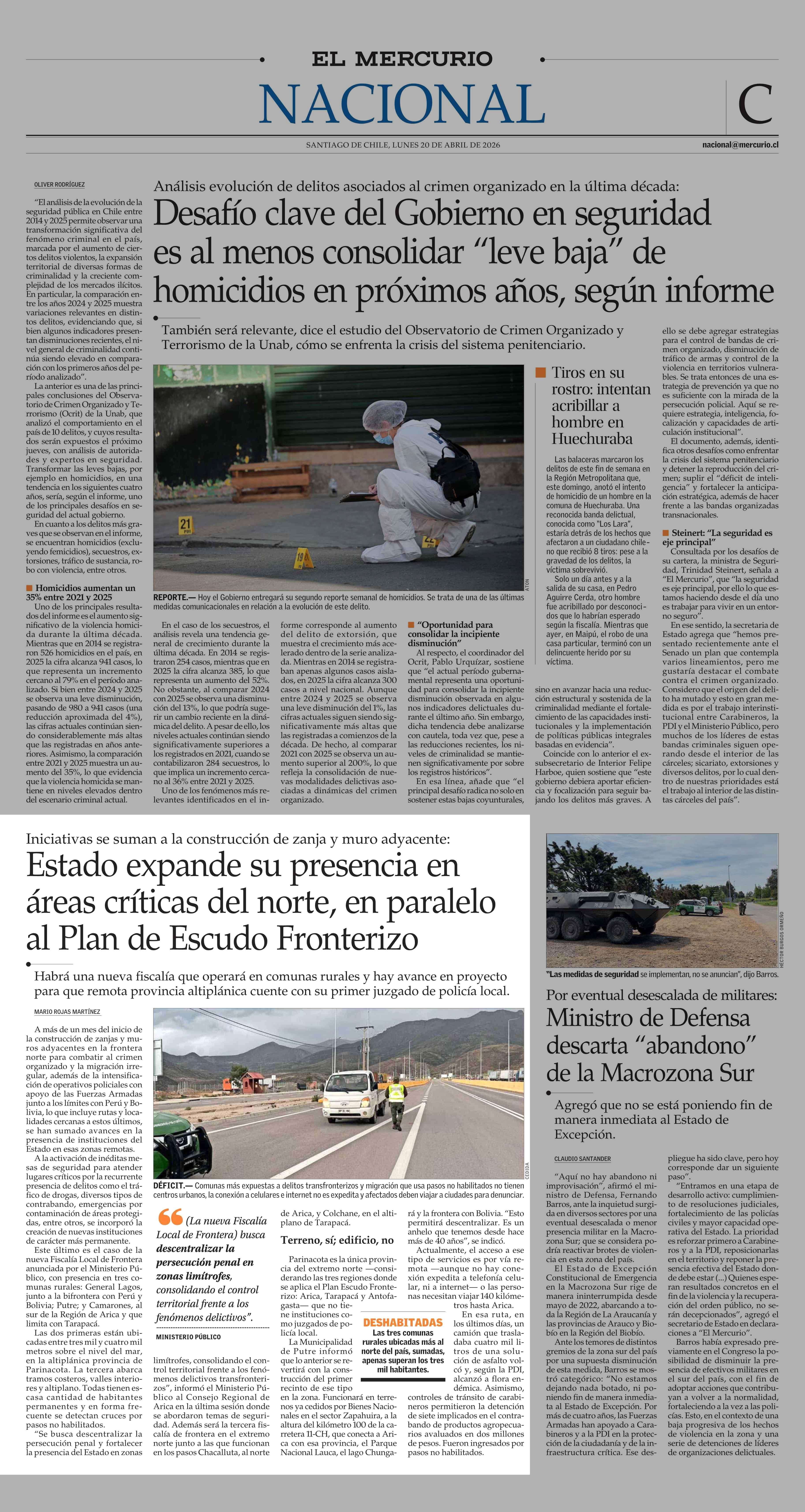 Estado expande su presencia en áreas críticas del norte, en paralelo al Plan de Escudo Fronterizo 20-04-2026 El Mercurio |