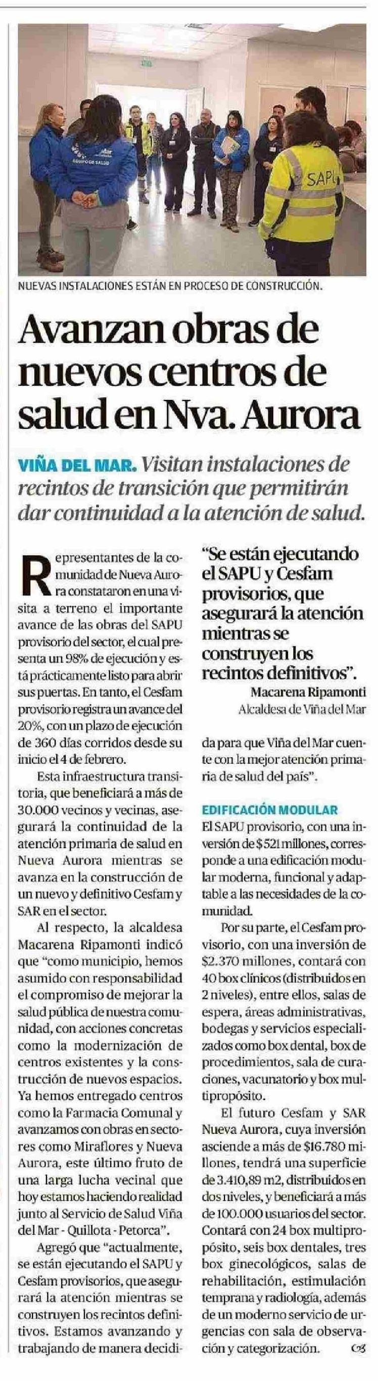 Título: Avanzan obras de nuevos centros de salud en Nva. Aurora