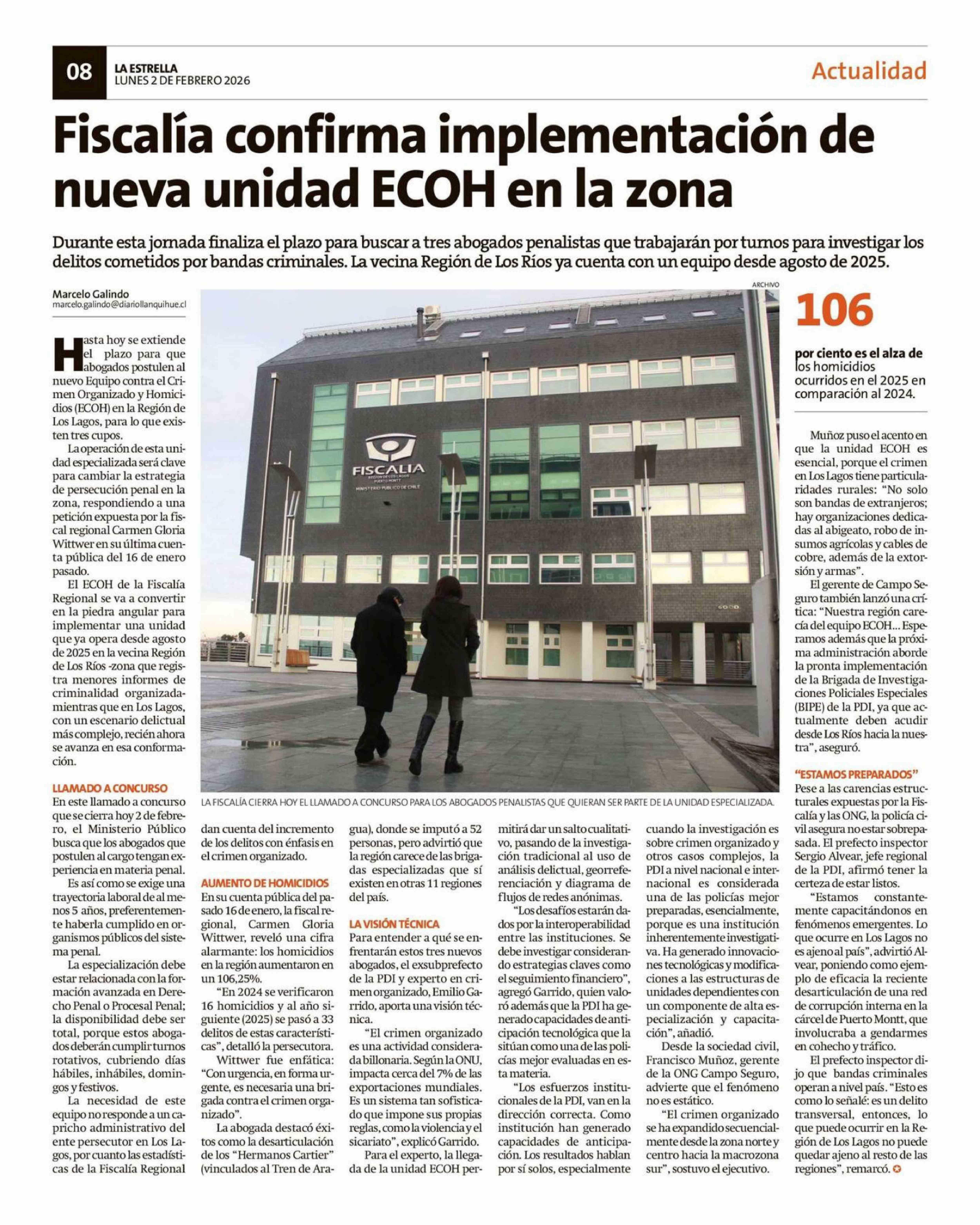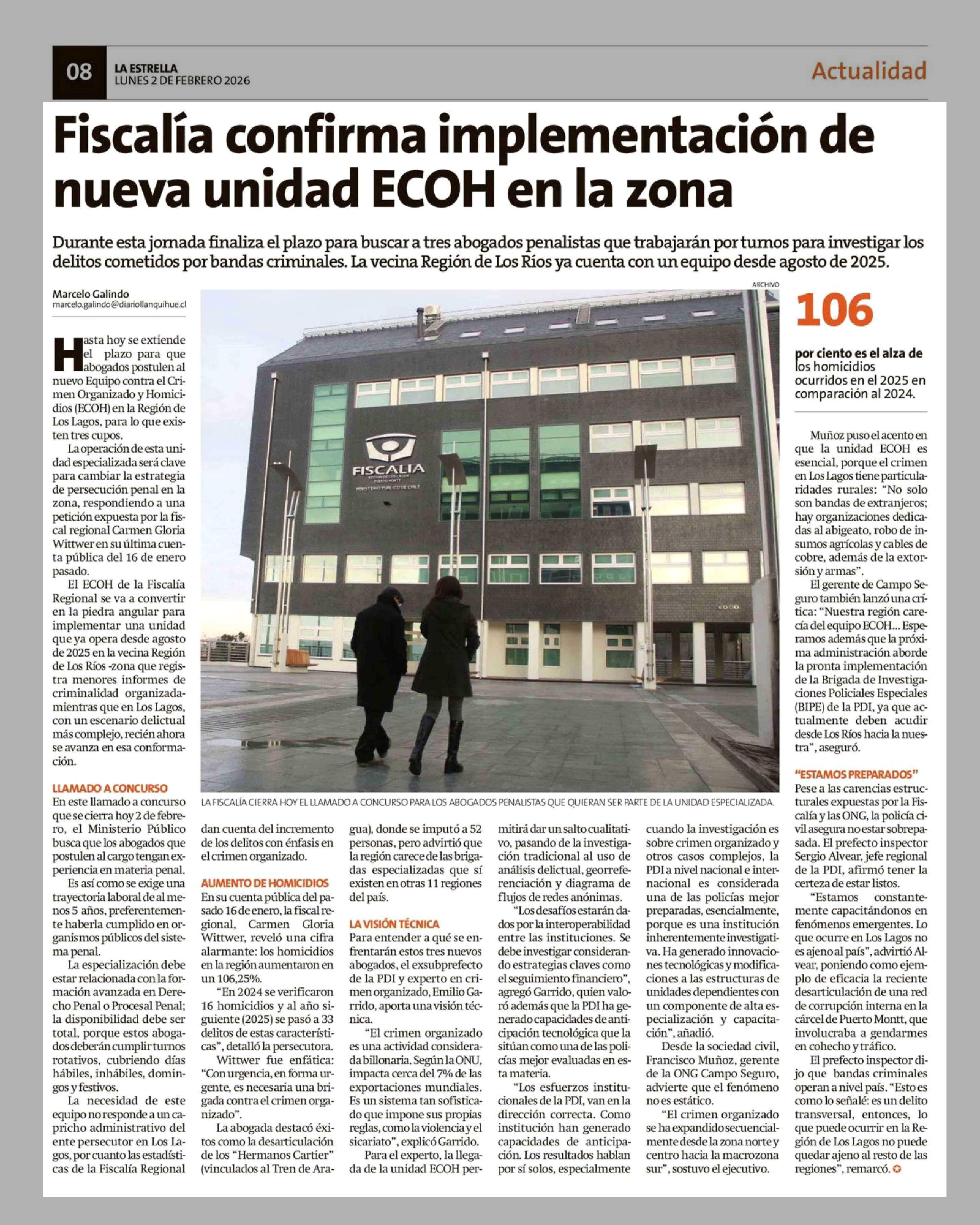 Fiscalía confirma implementación de nueva unidad ECOH en la zona 02-02-2026 La Estrella de Chiloé |