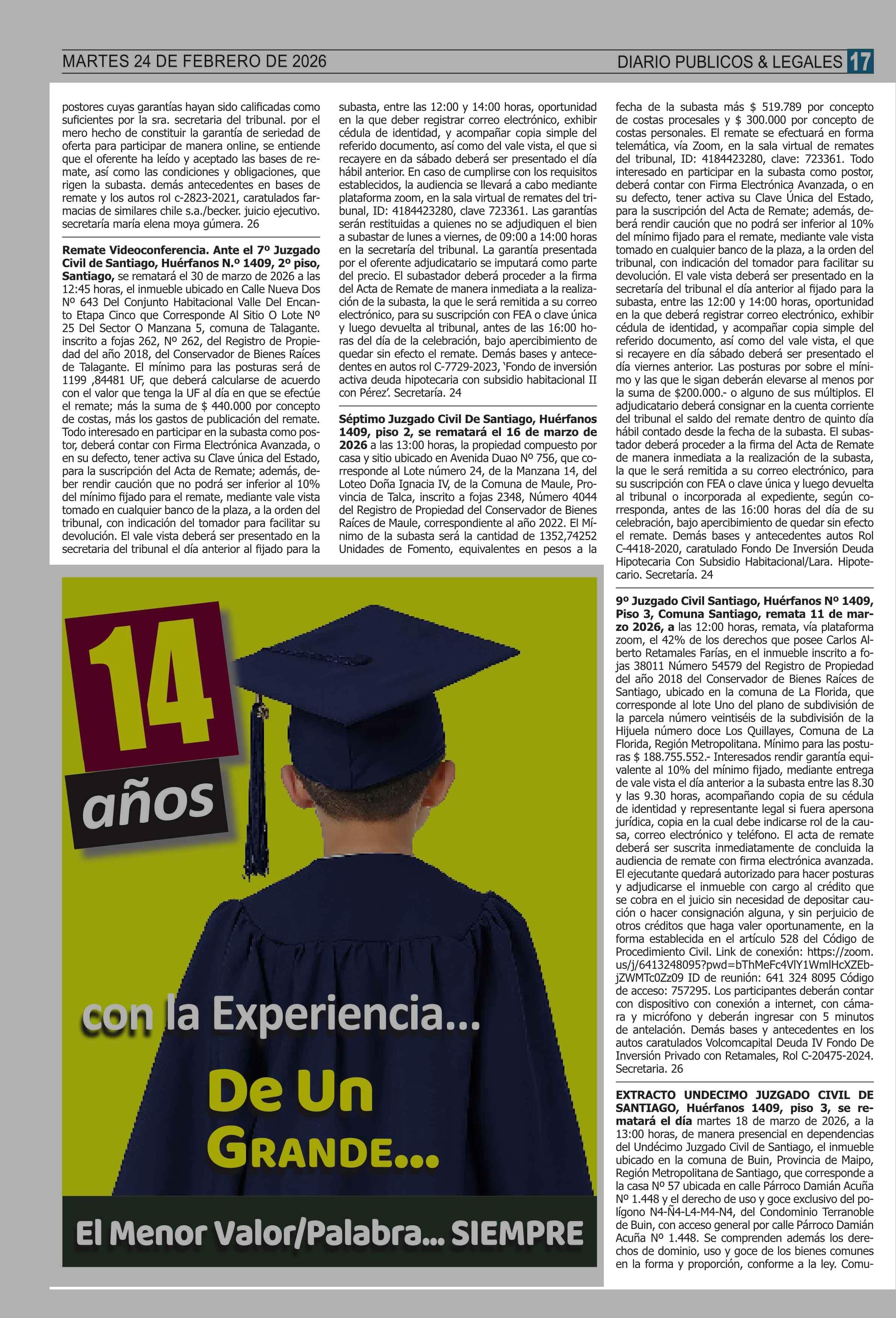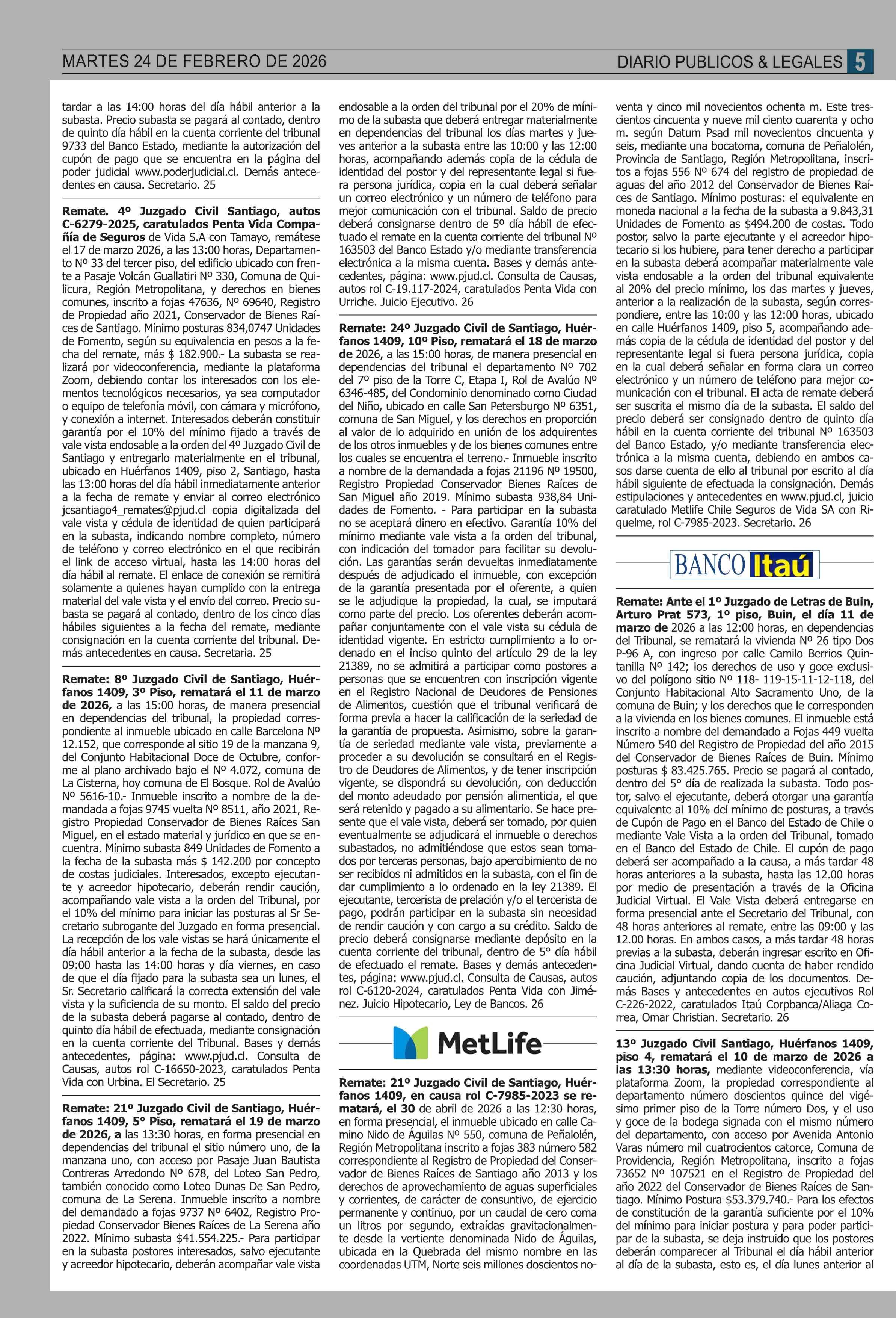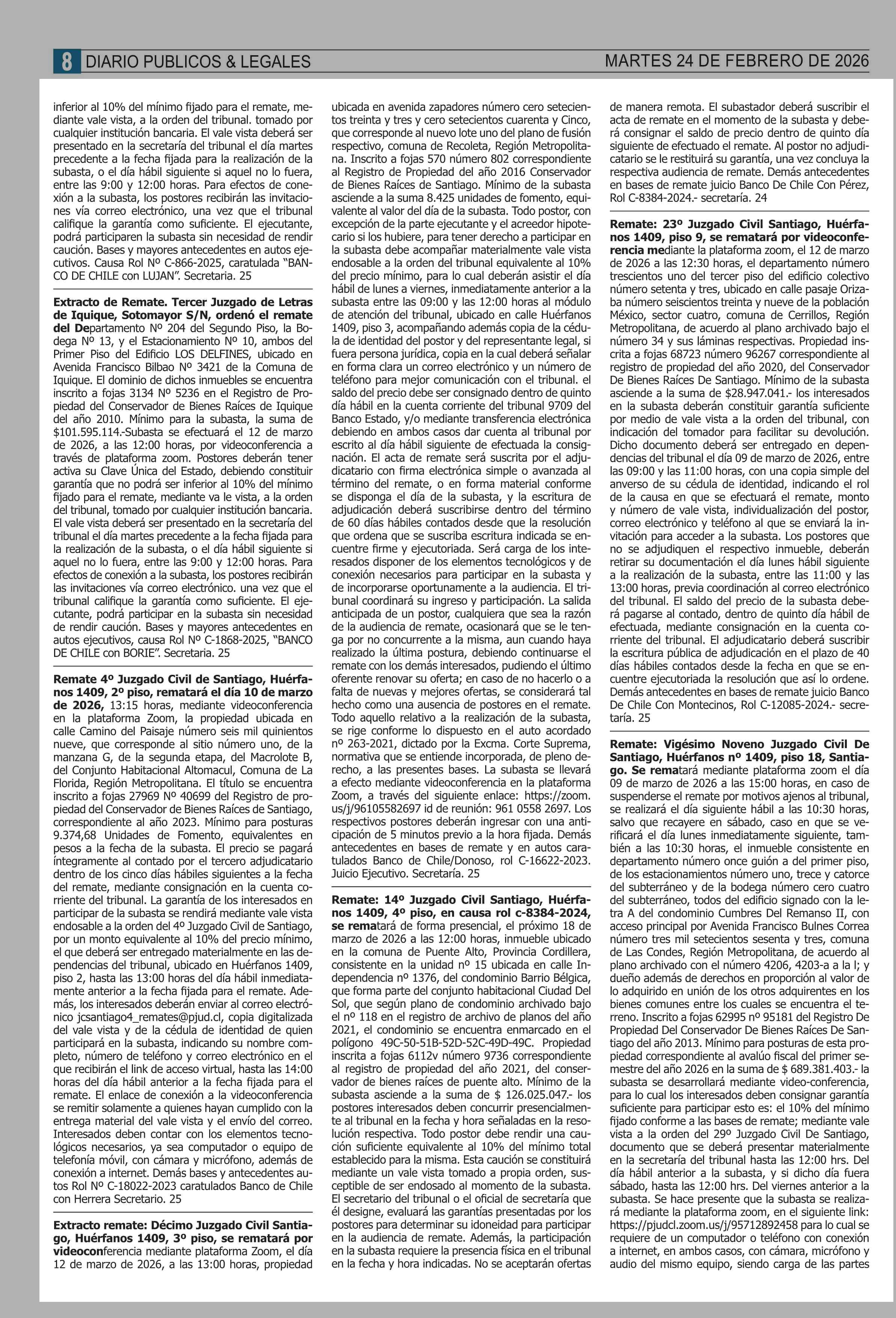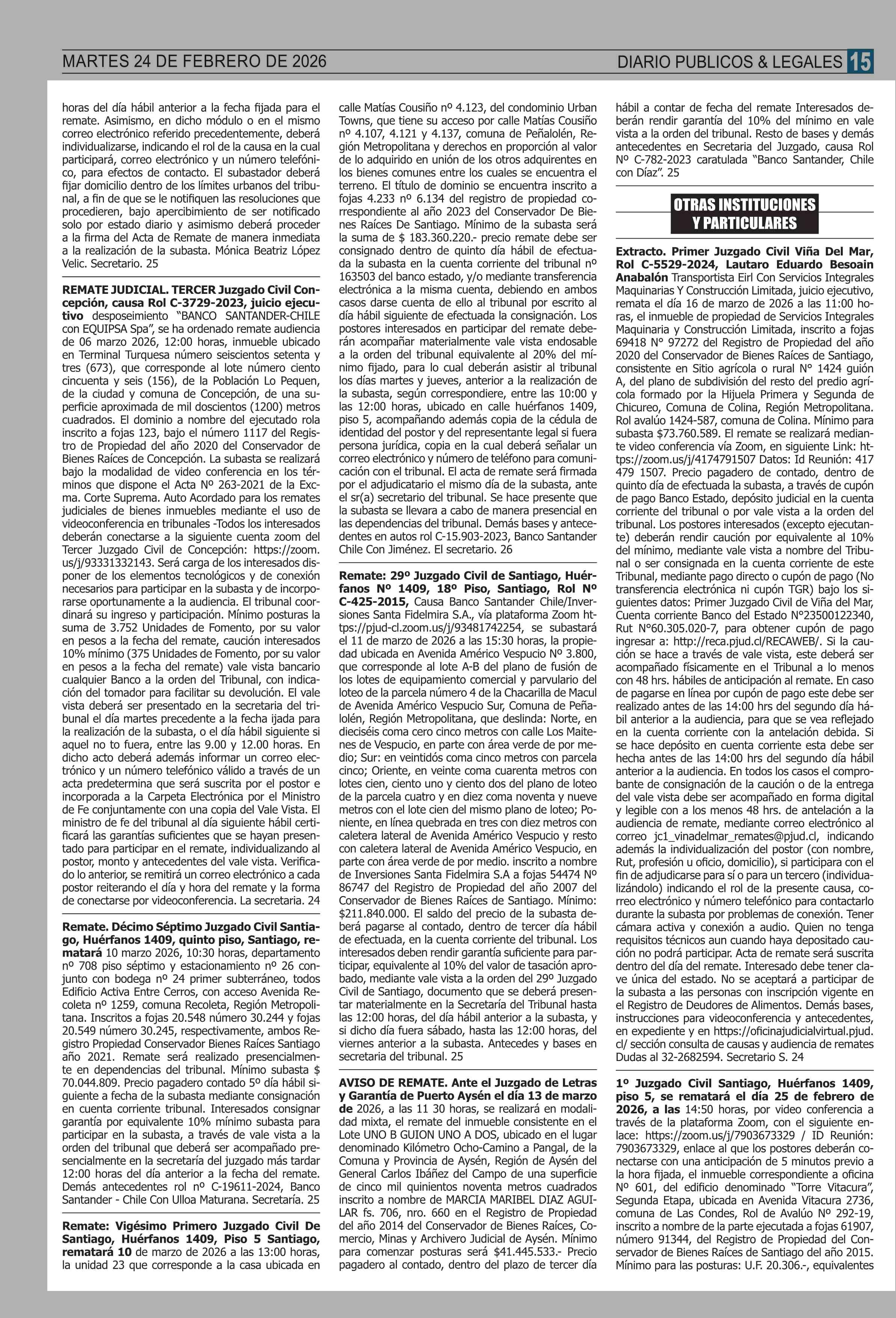 Fecha: 24-02-2026 Sector: Remates Región: Región Metropolitana de Santiago