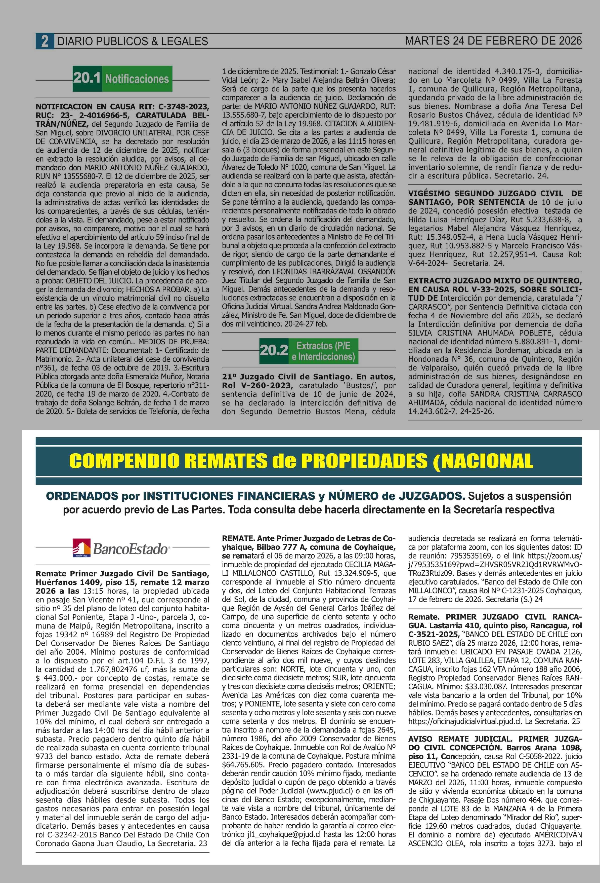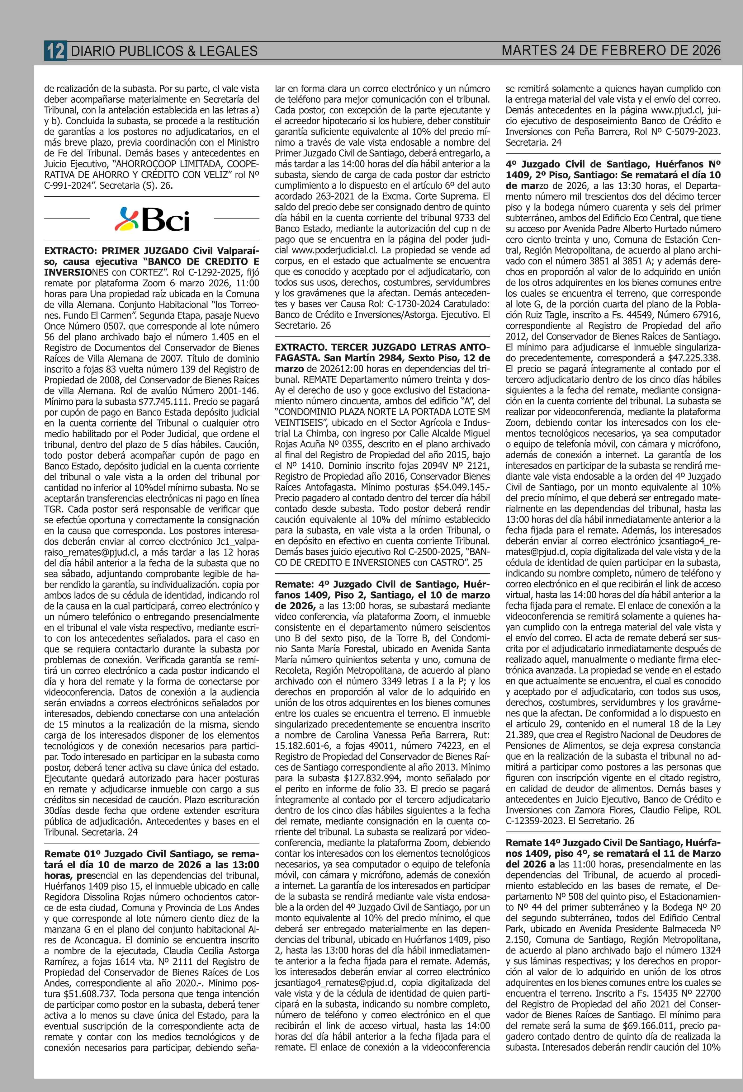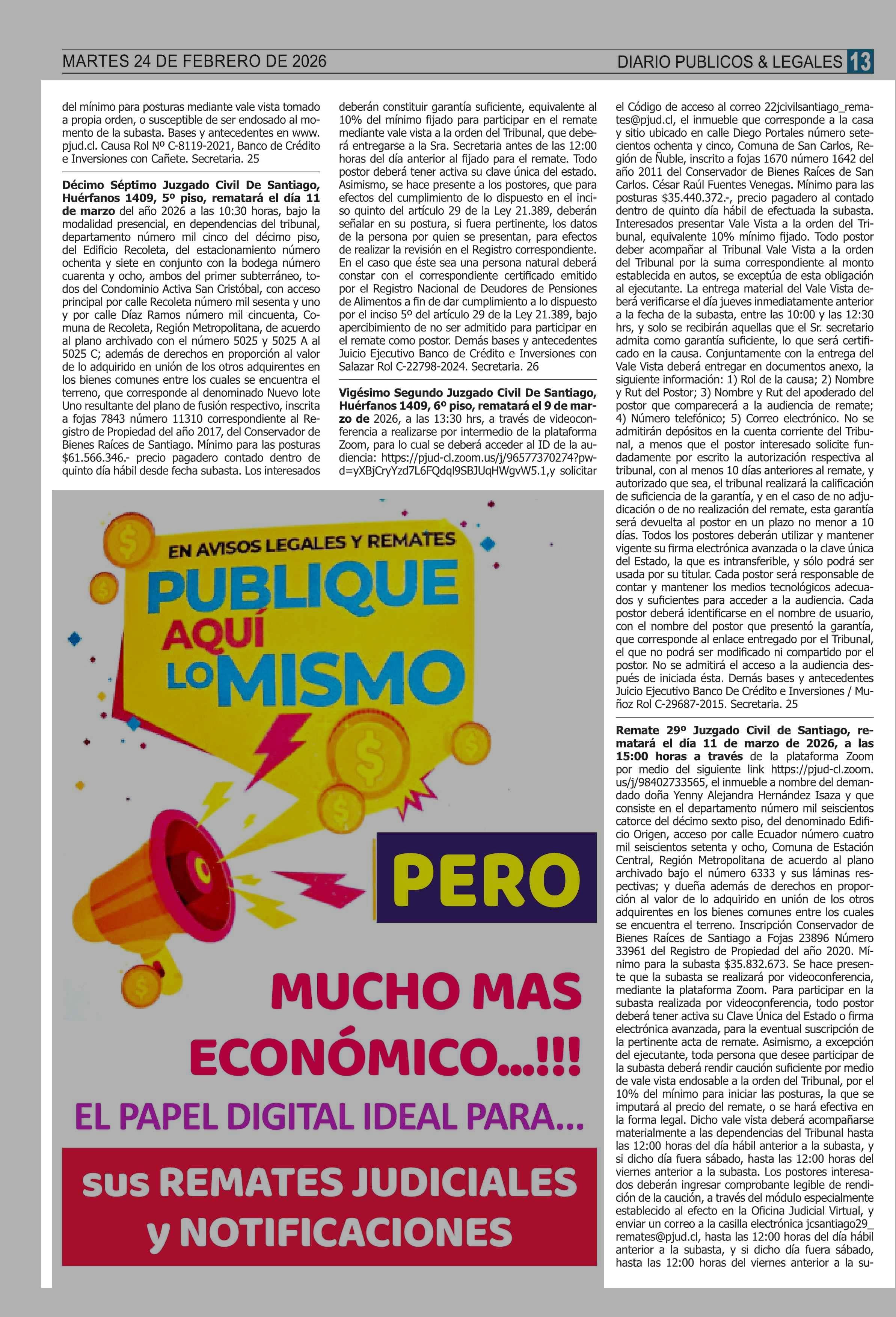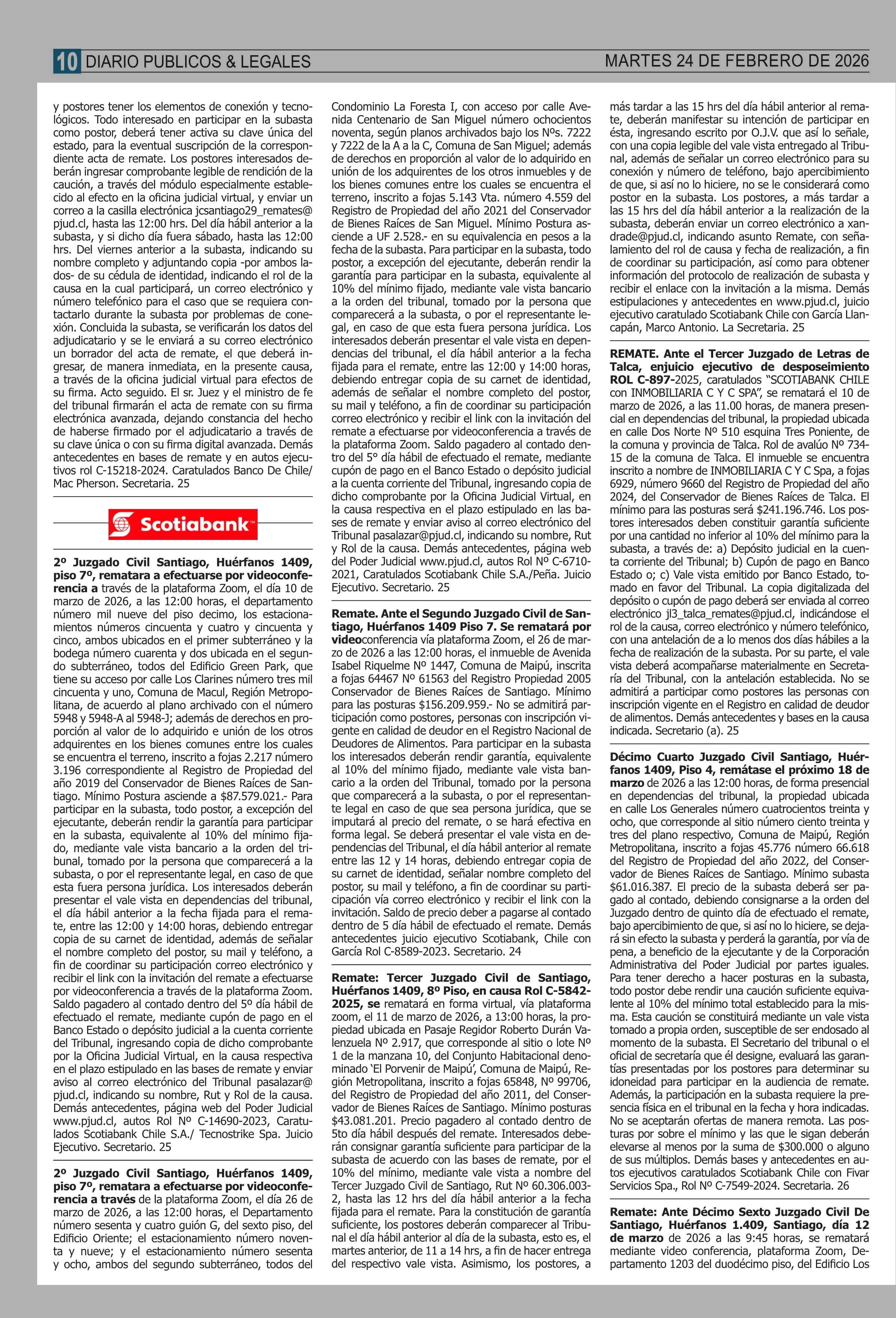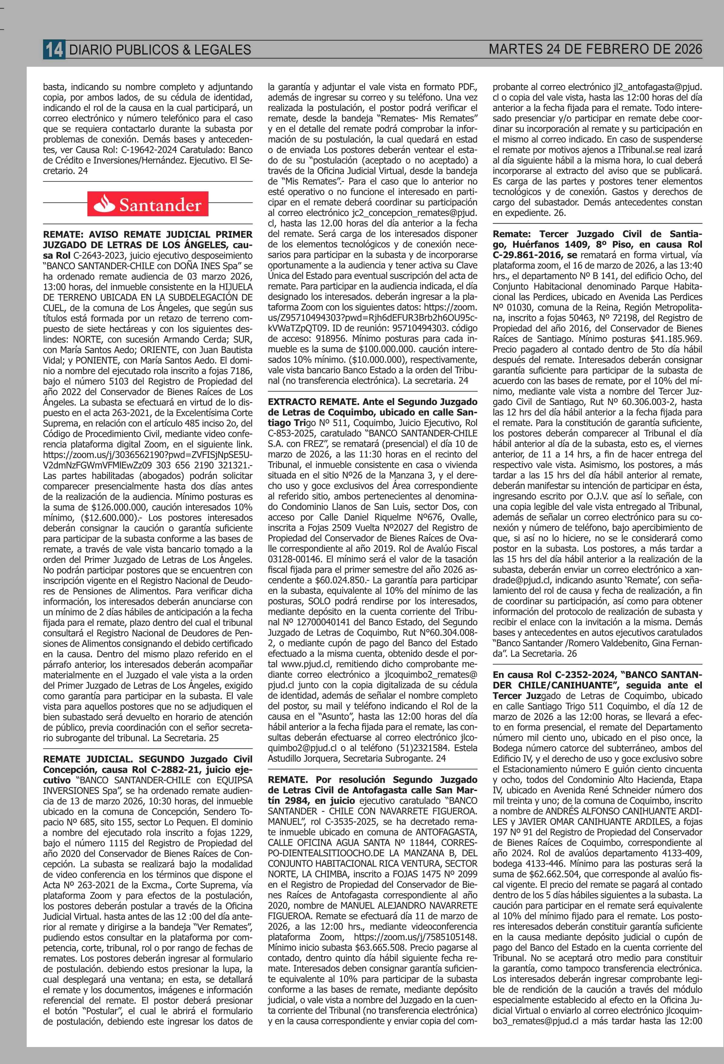 Fecha: 24-02-2026 Sector: Remates Región: Región Metropolitana de Santiago
