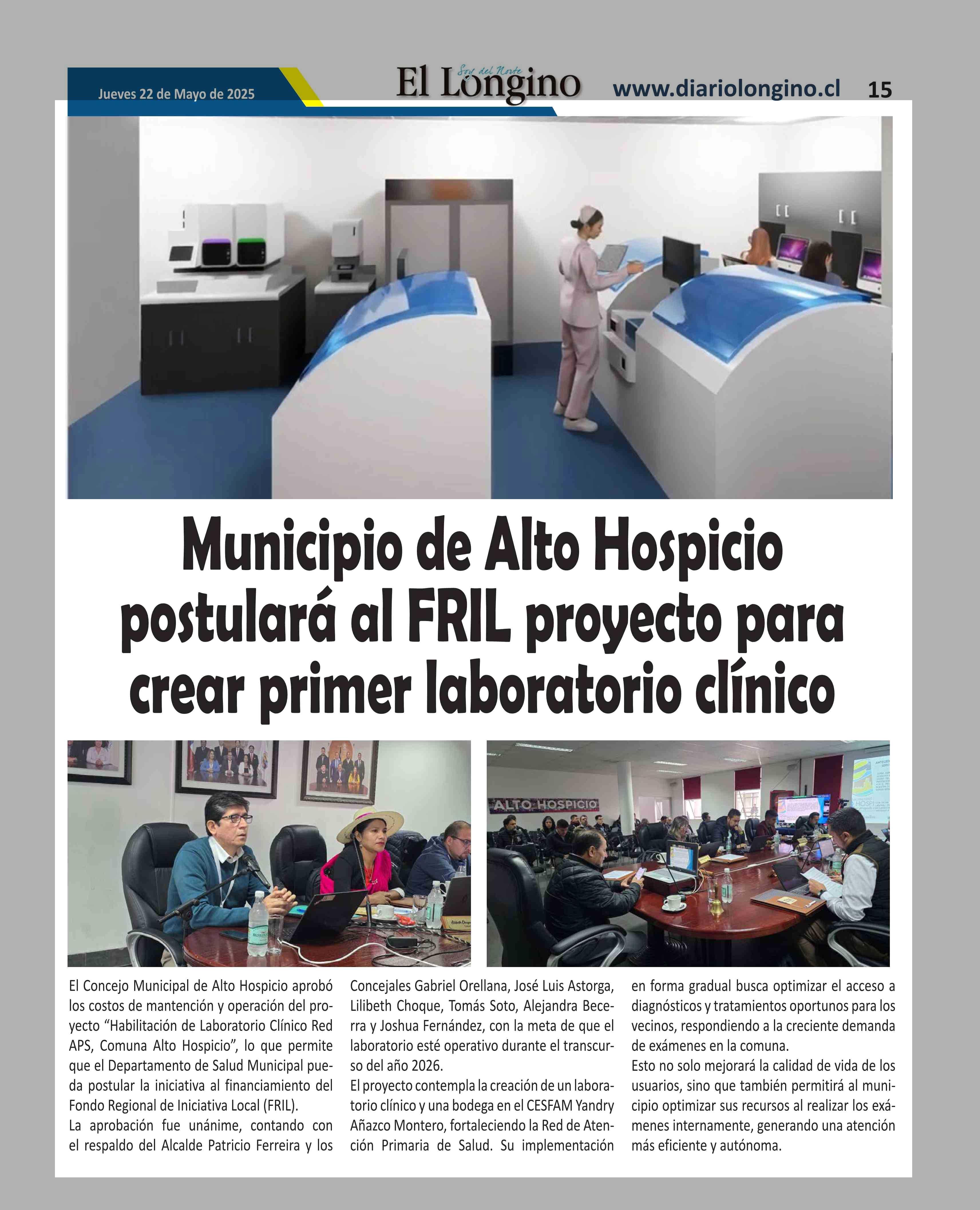 Municipio de Alto Hospicio postulará al FRIL proyecto para crear primer laboratorio clínico 22-05-2025 El Longino |