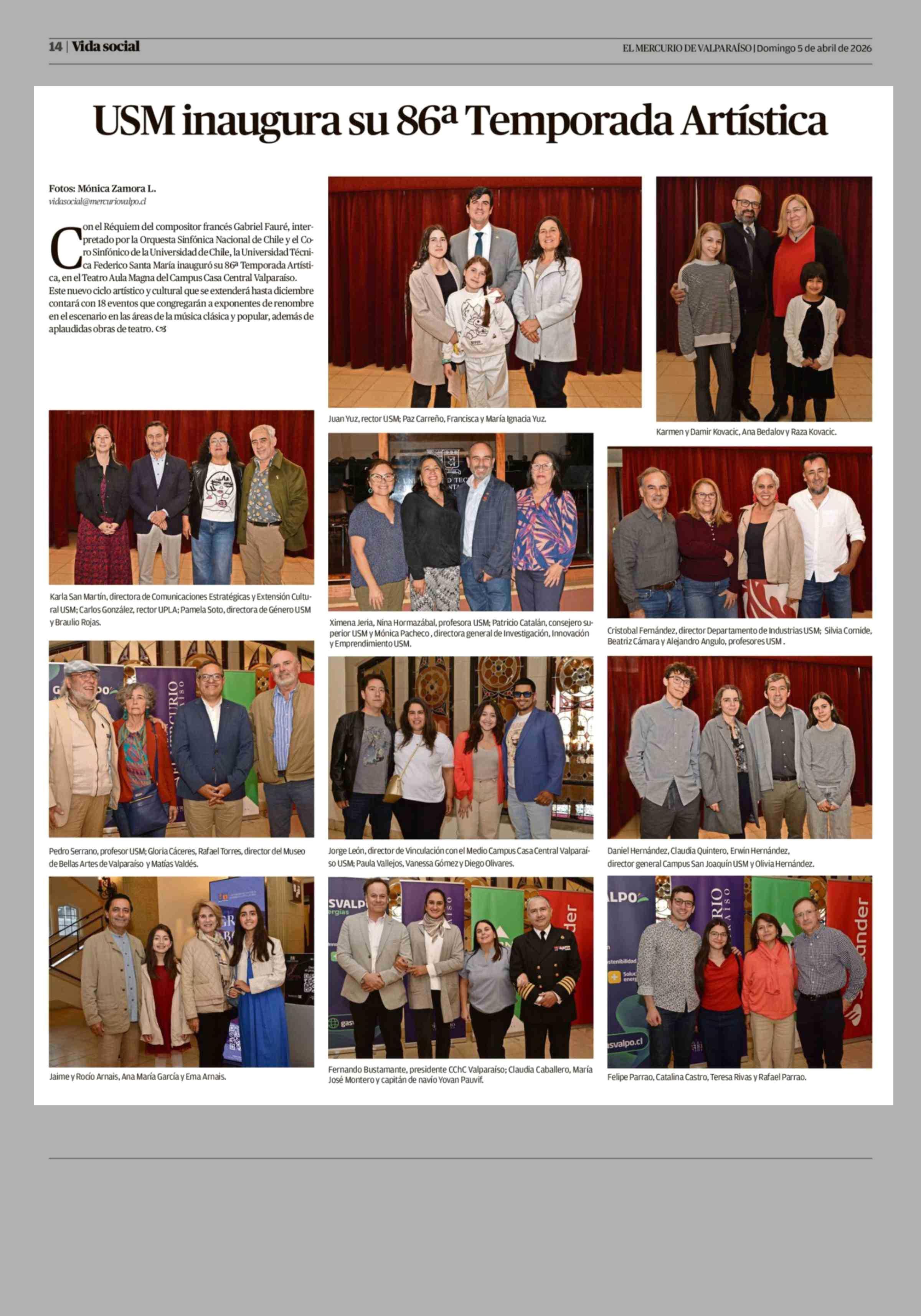 USM inaugura su 86ª Temporada Artística 05-04-2026 El Mercurio de Valparaíso |