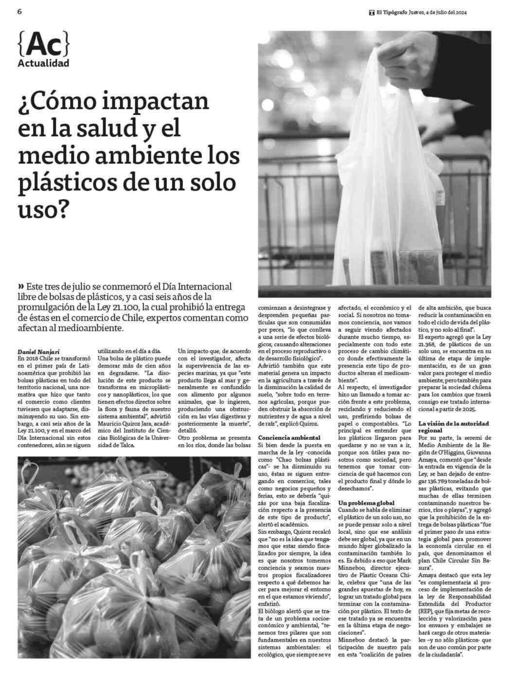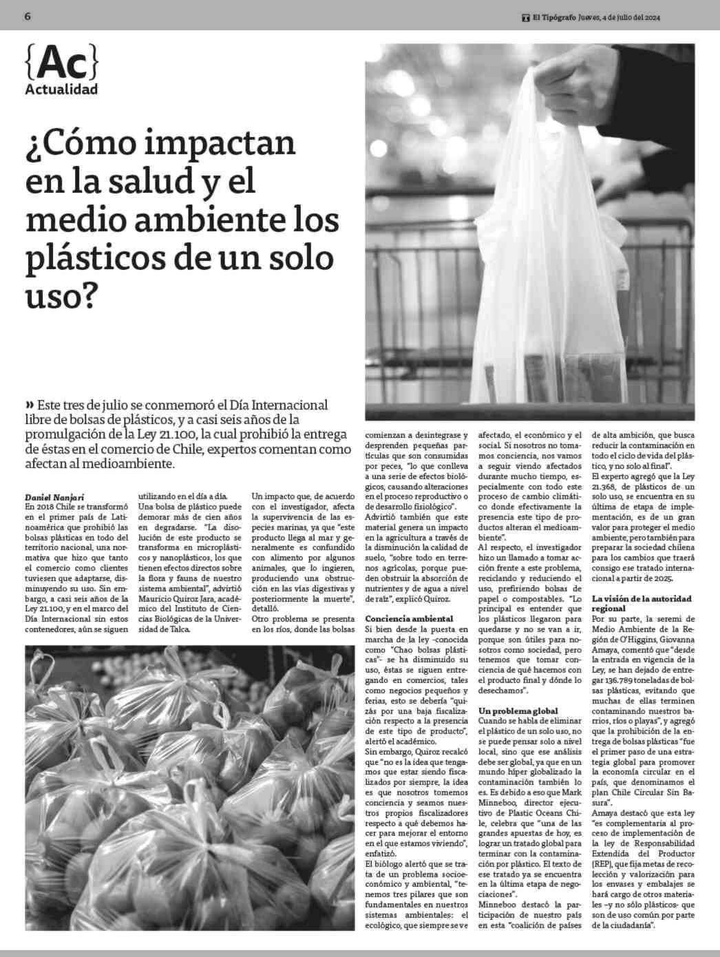 ¿Cómo impactan en la salud y el medio ambiente los plásticos de un solo uso? 04-07-2024 El Tipógrafo |