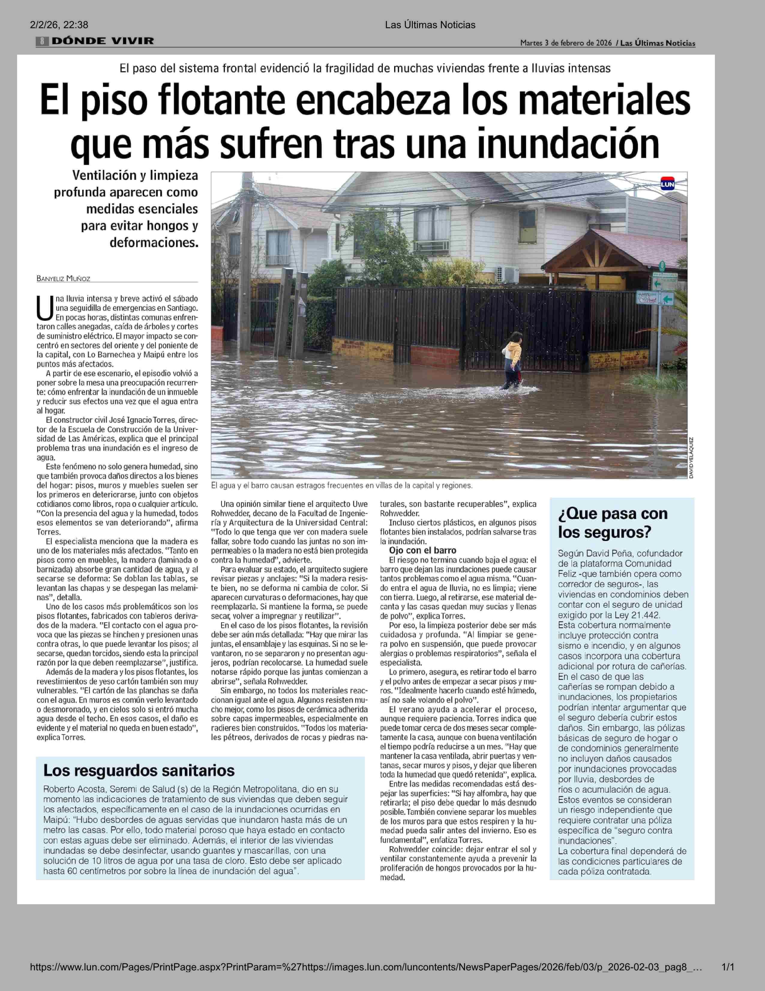 El piso flotante encabeza los materiales que más sufren tras una inundación 03-02-2026 Las Últimas Noticias |