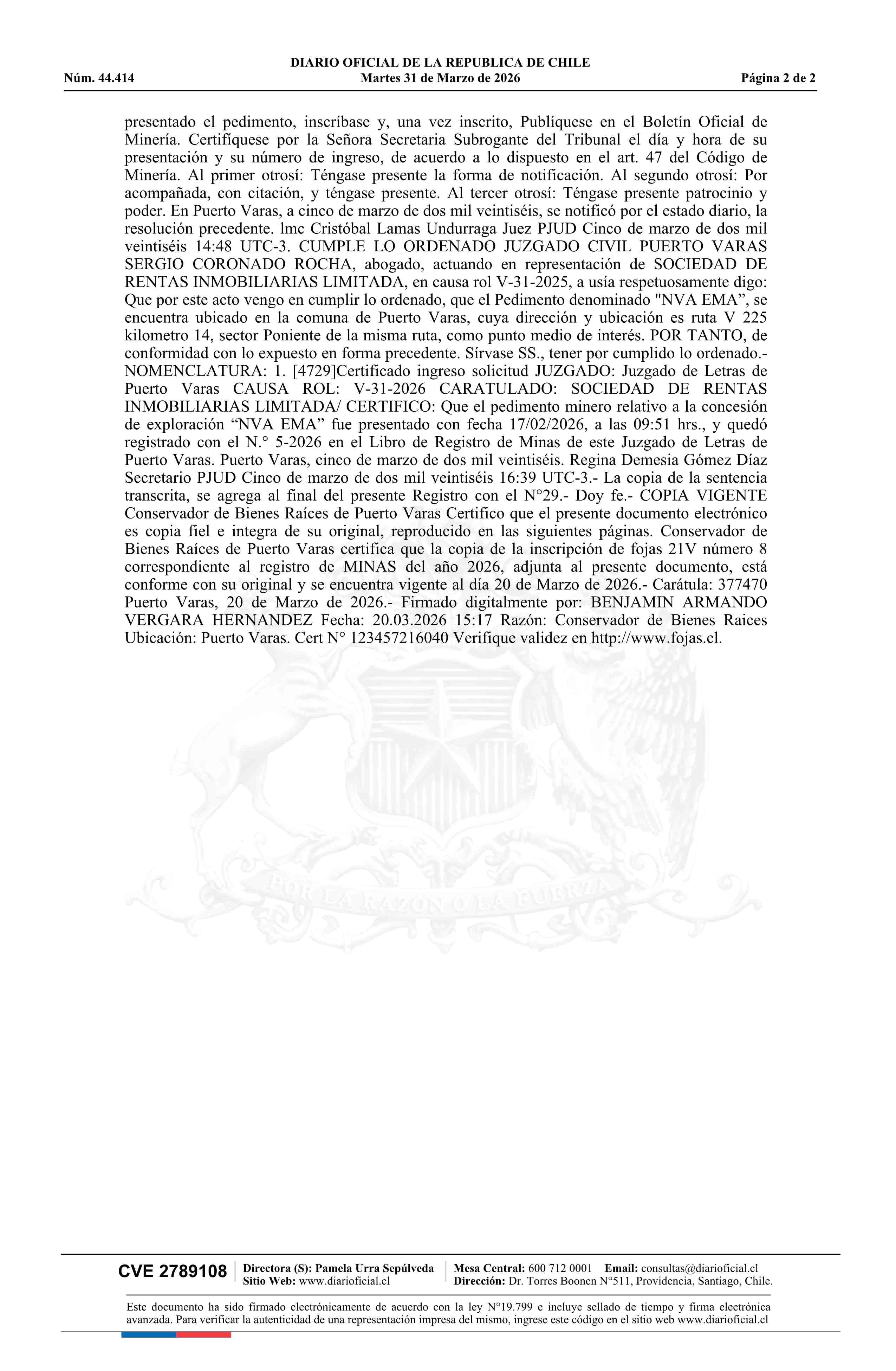 31-03-2026 DIARIO OFICIAL CHILE - BOLETÍN OFICIAL DE MINERÍA