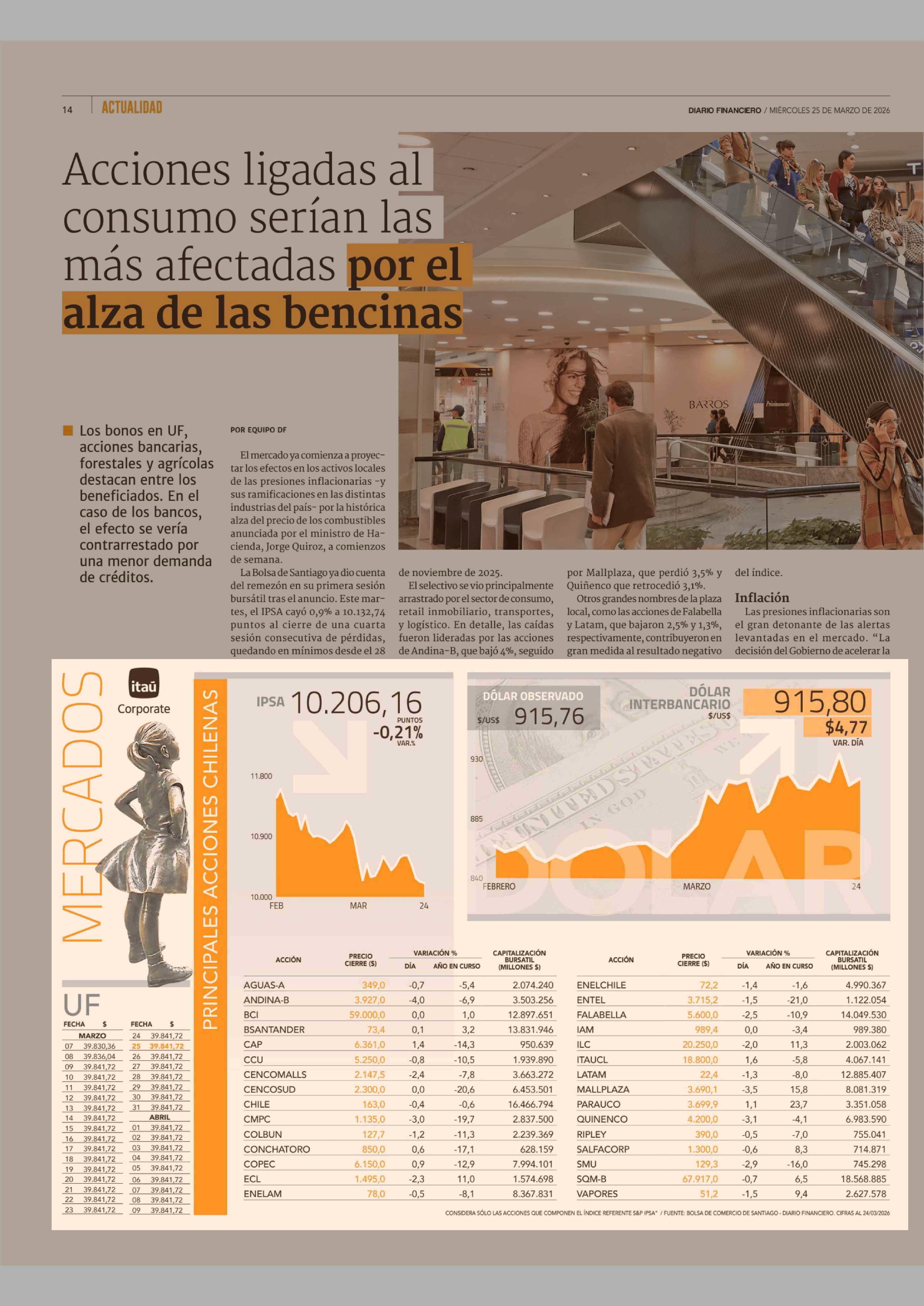 Fuente: Diario Financiero (Diario Financiero) Página(s): 14