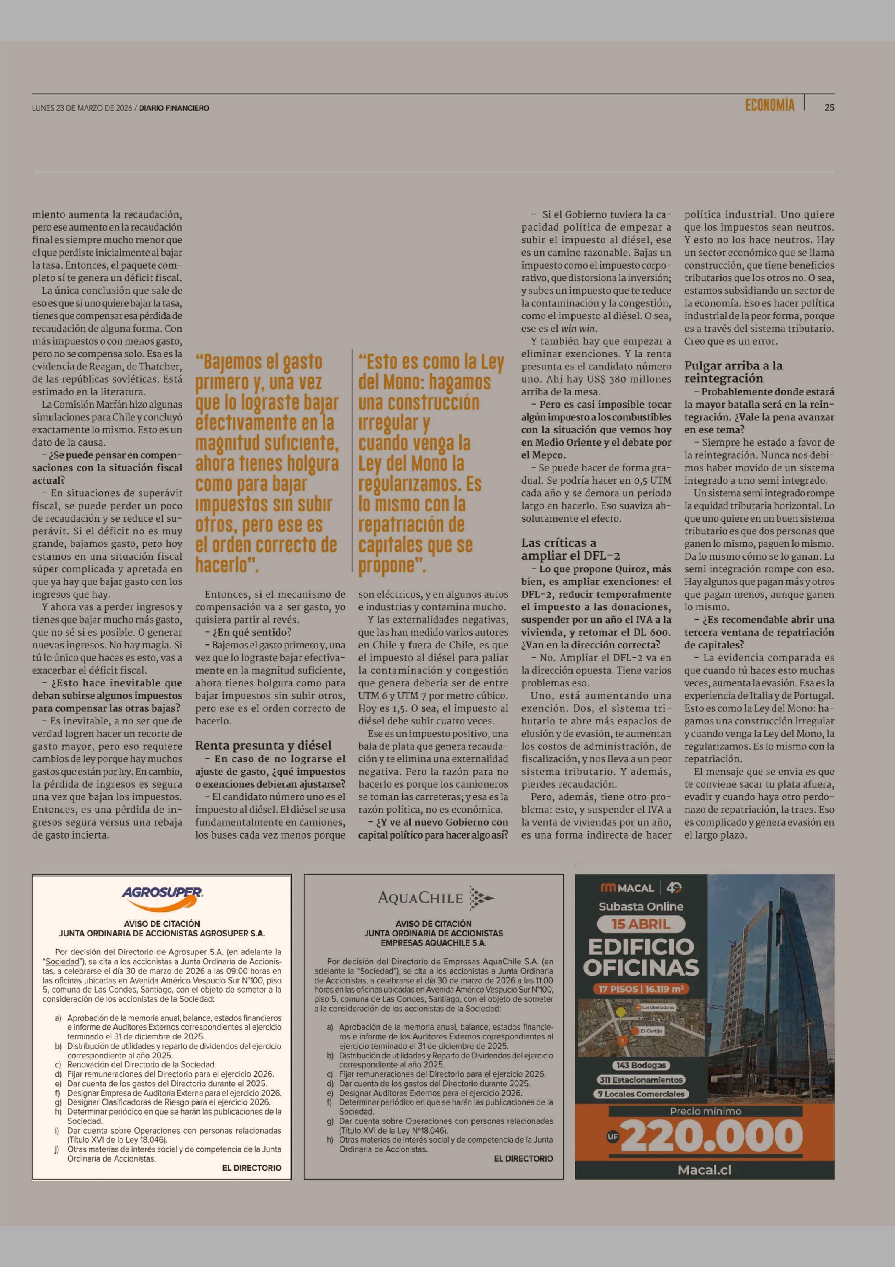 Fuente: Diario Financiero (Diario Financiero) Página(s): 25