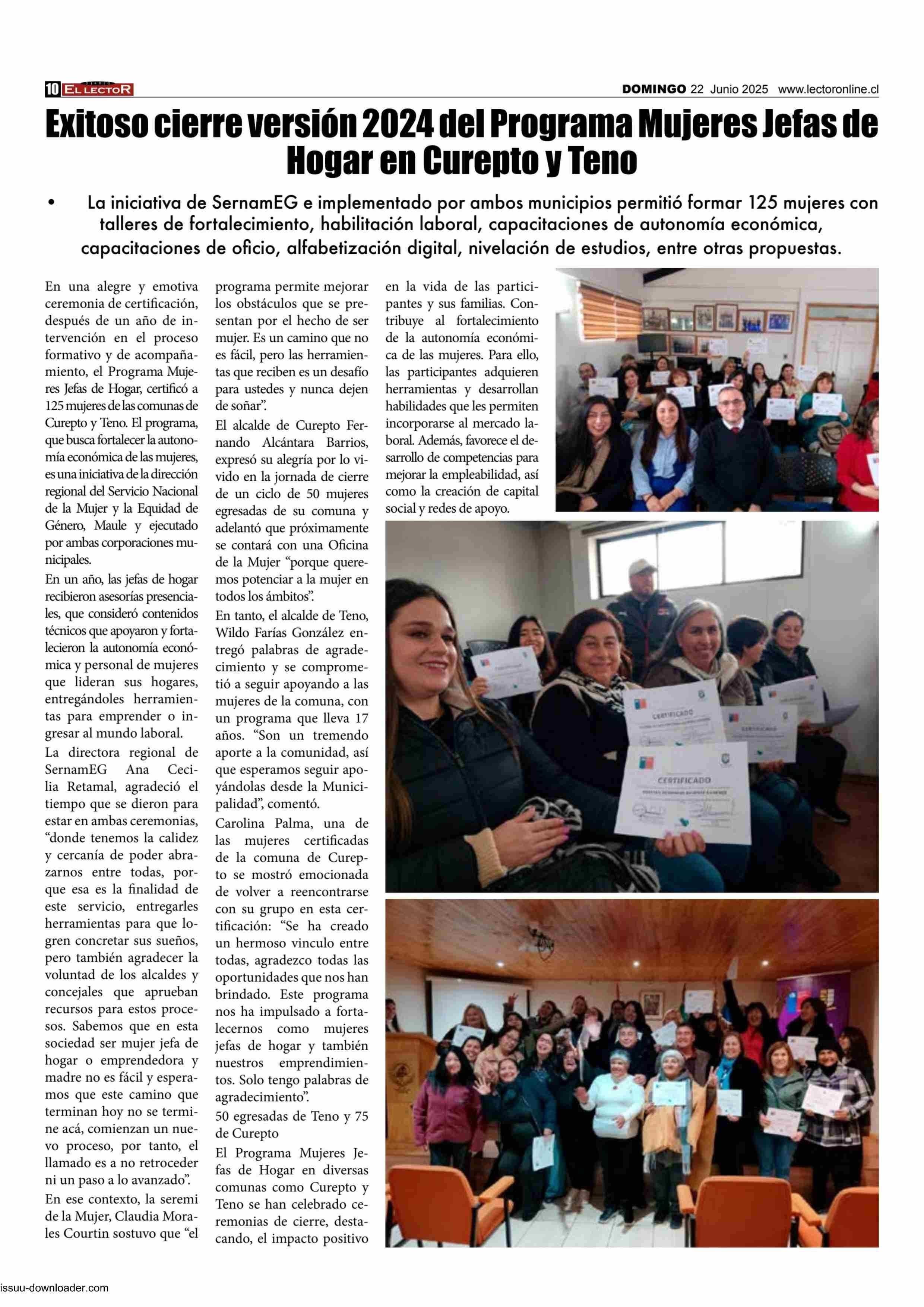 EXItosO cierre versión 2024 del Programa Mujeres Jefas de Hogar en Curepto y Teno 24-06-2025 El Lector |