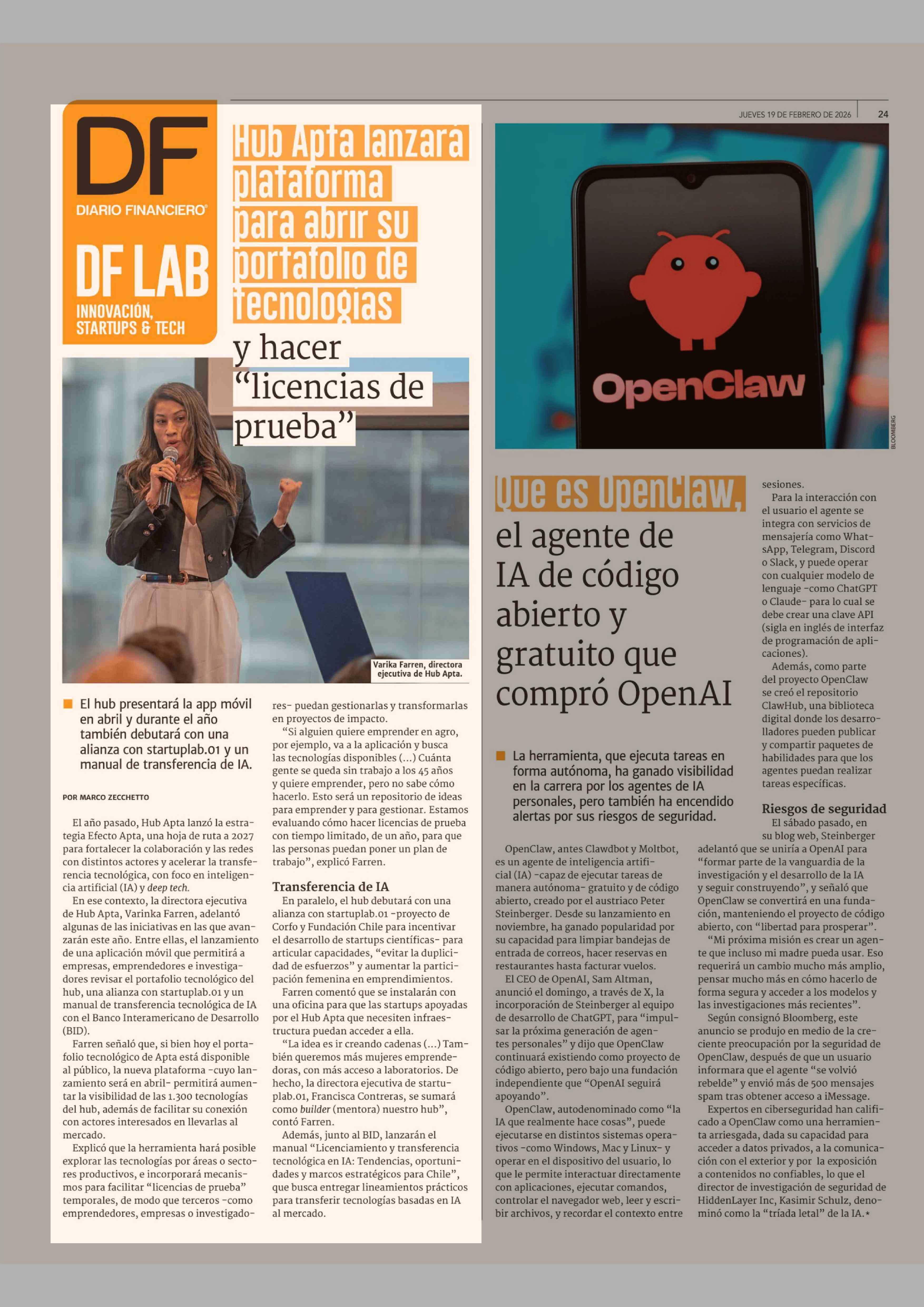Título: Hub Apfa lanzara plataforma para abrir su portafolio de tecnologias y hacer "licencias de prueba"