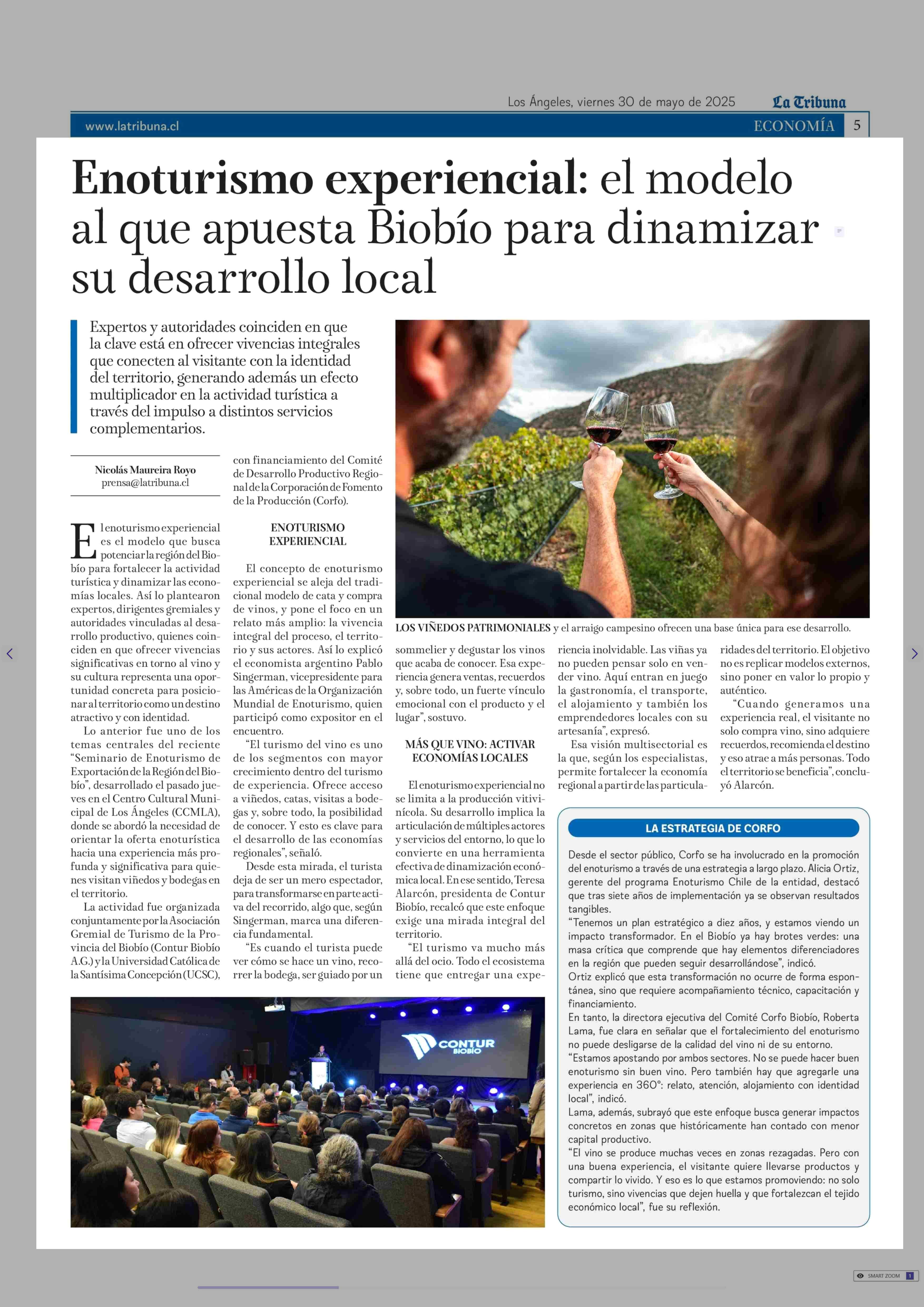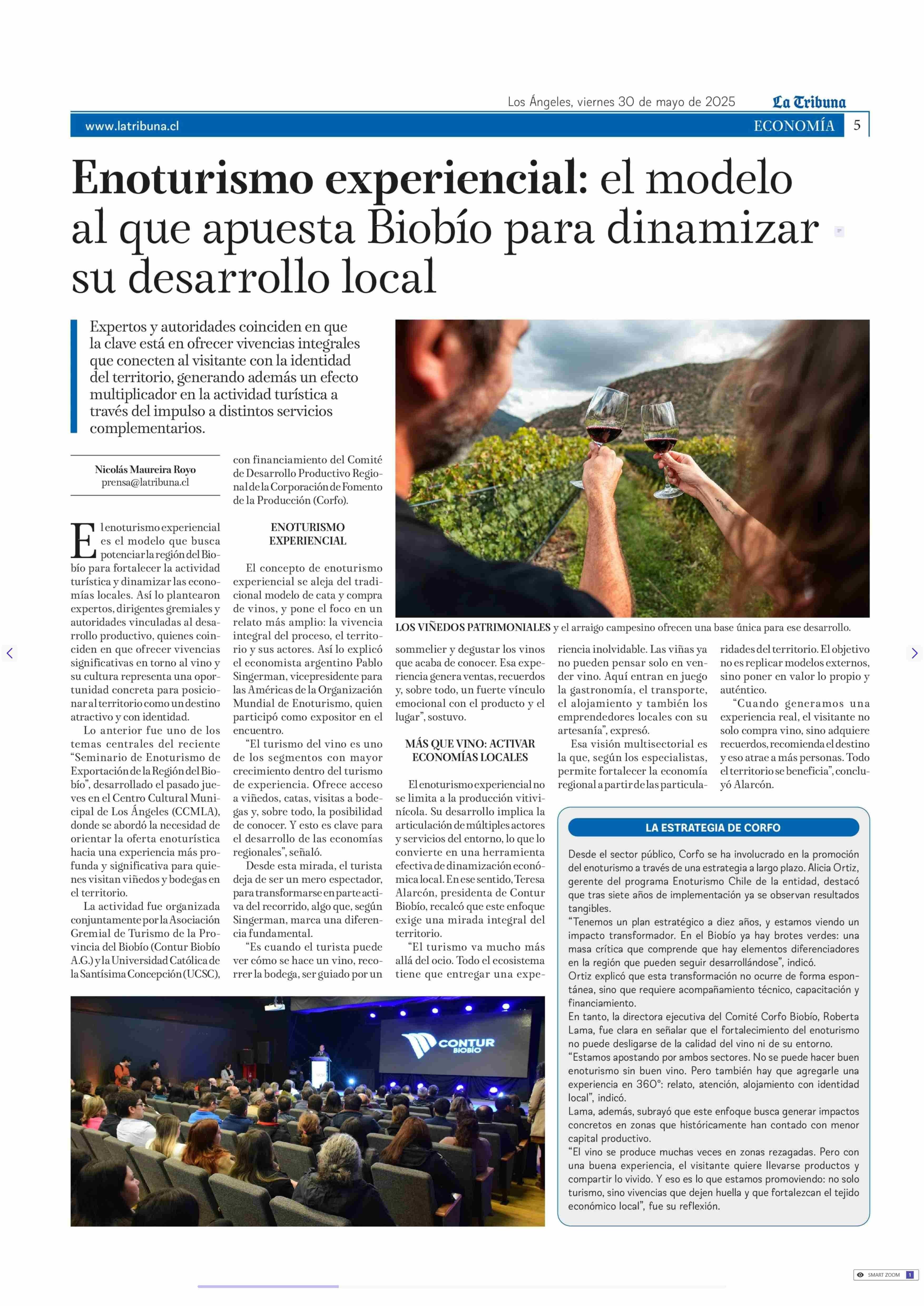 Enoturismo experiencial: el modelo al que apuesta Biobío para dinamizar su desarrollo local 30-05-2025 La Tribuna |